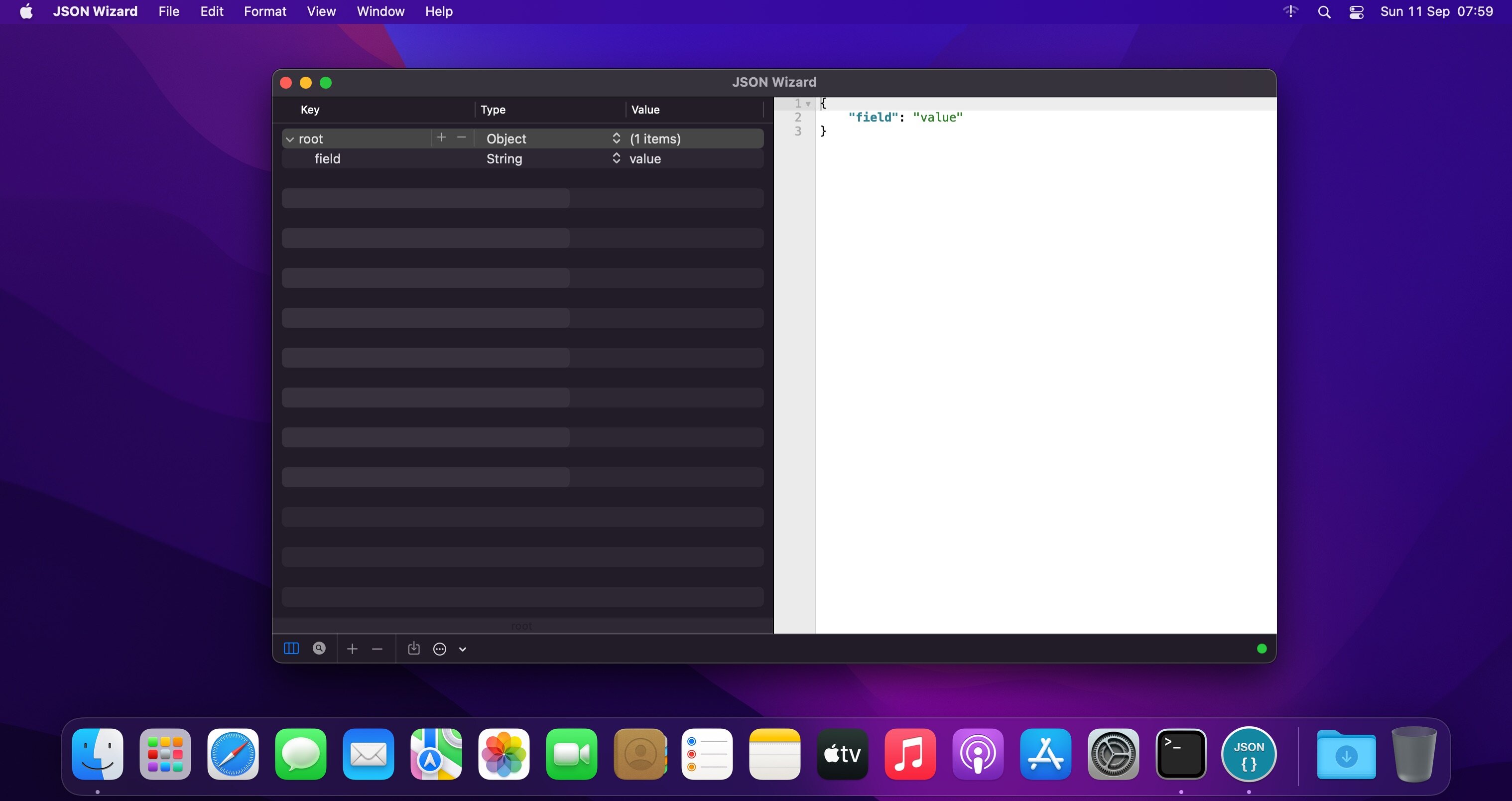 ApplicationApplications JSON Wizard 2.6.3 February 27, 2026 ( JSON Wizard 2.6.3 )Loading... Download JSON Wizard is the perfect tool for you if you simply want to view and edit your JSON files. Or perhaps you want to be able to import XML/YAML/PLIST/CSV files. Perhaps you even want to be able to export to all those formats as well. JSON Wizard provides both easy visual editing and direct access to the source code with live syntax checking. Features Import pure JSON, XML, property lists (XML or binary), YAML, and even CSV Edit and view JSON (via the Source-code or the Data-tree view) and observe changes live Advanced live syntax checking/linter, with error checking and live notifications Source beautifier Powerful search feature (to browse through all tree nodes) Search-by-path feature (to access specific nodes) Export/save to JSON, XML, YAML, property list (XML-based or binary) Live HTTP request tool (GET/POST + with additional headers suppor Compatibility: macOS 11.0 or later Homepage https://jsonwizard.app/ Screenshots Name: JSON_Wizard_2.6.3.dmg Size: 9 MB Files JSON_Wizard_2.6.3.dmg [9 MB] Download Torrent Related Posts:JSON Wizard 2.0JSON Wizard 2.4JSON Wizard 2.6JSON Wizard 2.6.1 Download 2.6.3JSONWizard 0 comment TwitterRedditEmail mac torrent MacTorrent - Torrents in Mac. Free Apps, Games & Plugins. Apple Final Cut Pro & Logic Pro X, Adobe Photoshop, Microsoft Office, Pixel Film Studios, previous post AppKiller 4.2.4 next post Tinderbox 11.6.0