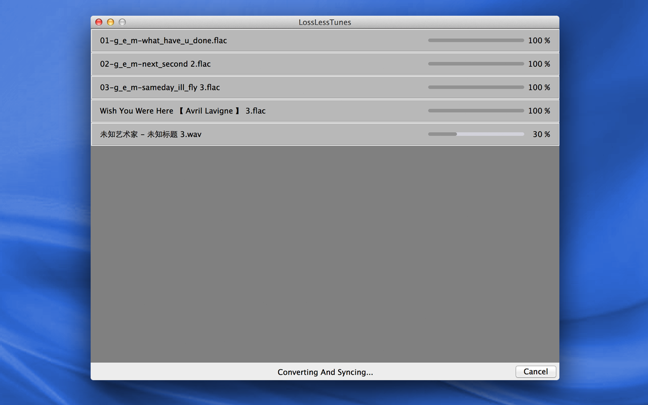 LosslessTunes is the best choice to convert your lossless songs to iTunes. It converts common lossless audios (flac, ape, wav, alac, wma) to Apple’s own lossless audio format without losing quality. You can play those audios on your Mac or download them to the iOS devices.
