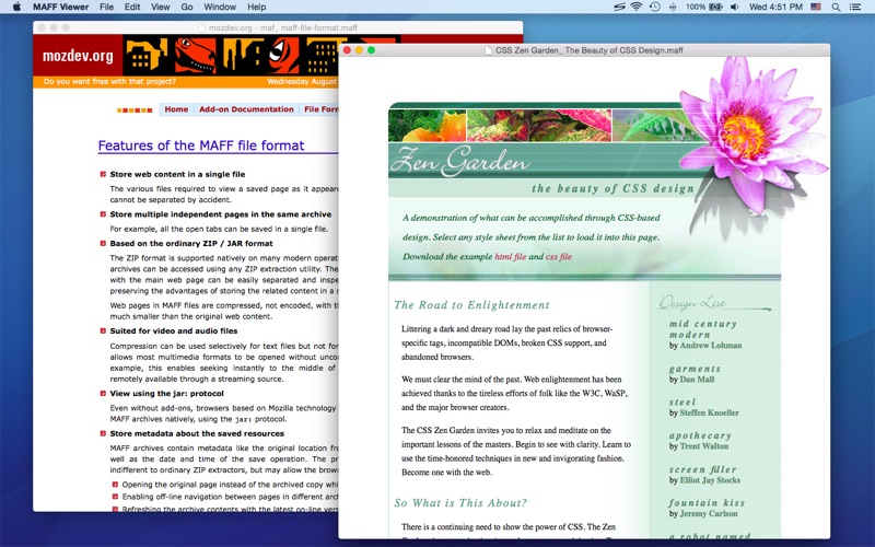 MAFF Viewer is a lightweight utility for viewing/reading Mozilla Archive Format (.maff) documents.