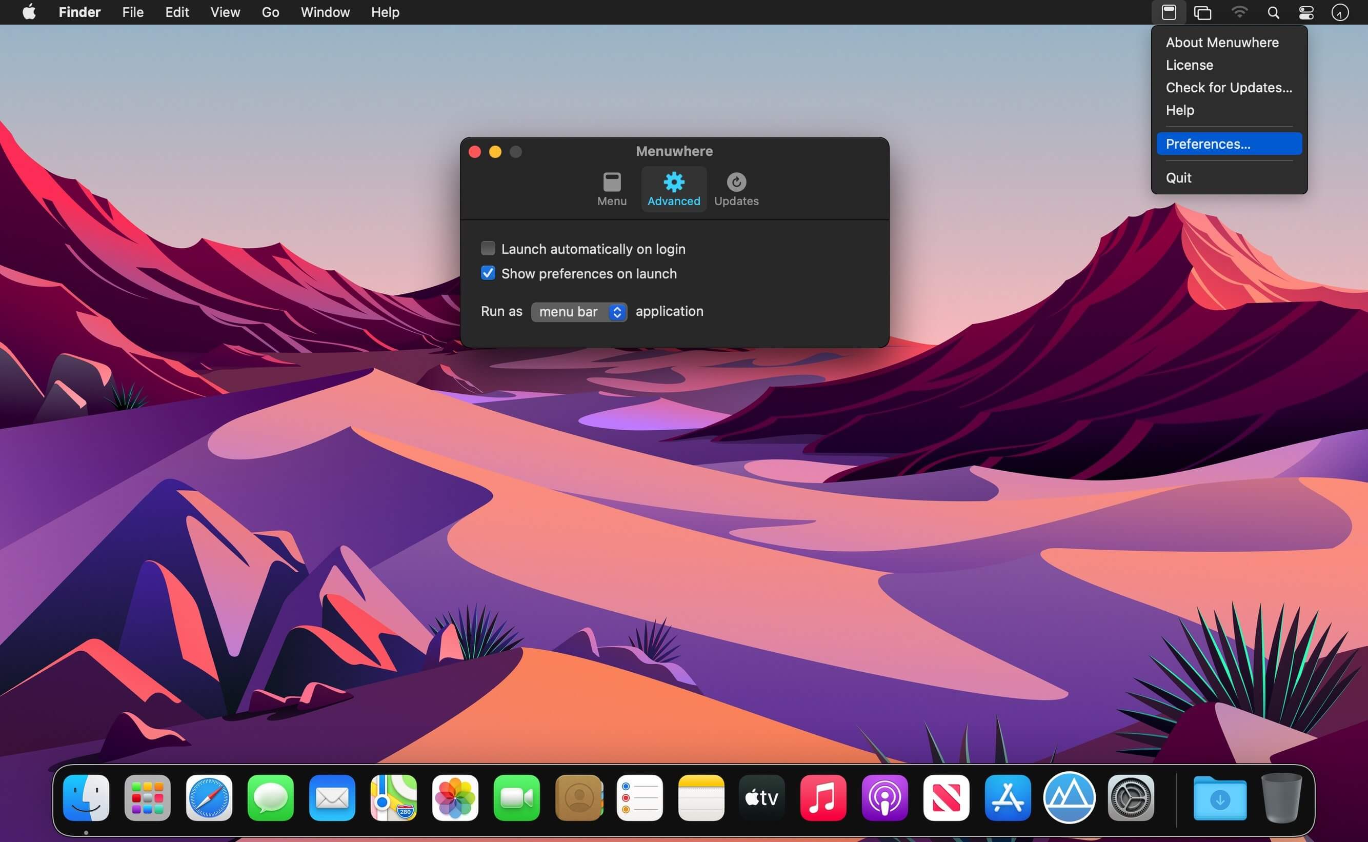 Menuwhere 1.0 April 22, 2021 , Application, Utilities Name: Menuwhere_1.0__TNT_Mactorrents.io.dmg Size: 4.43 MB Files Menuwhere_1.0__TNT_Mactorrents.io.dmg[4.43 MB] Download The menu, anywhere. Utility puts the frontmost app’s menu bar into a pop-up menu at your mouse’s location—say goodbye to those long trips to the menu bar; the main menu is now just a hot key away. Fancy marketing copy goes here! The video above really says it all. Even the placeholder image tells pretty much the entire story: Menuwhere’s one purpose is to pop up the frontmost app’s menus at the current mouse location. That’s about it. But even the most straightforward apps can use some cheering on, and you might like to learn about customization options before you download, so read on… Drill down with mouse or keyboard Once on-screen, you can drill down into the menus as far as you need to go, using either the keyboard (arrow keys and/or first-letter typing) or the mouse. Either way, your targeted menu item is quickly located. Compatibility: macOS 10.10 or later Homepage https://manytricks.com/ Screenshots