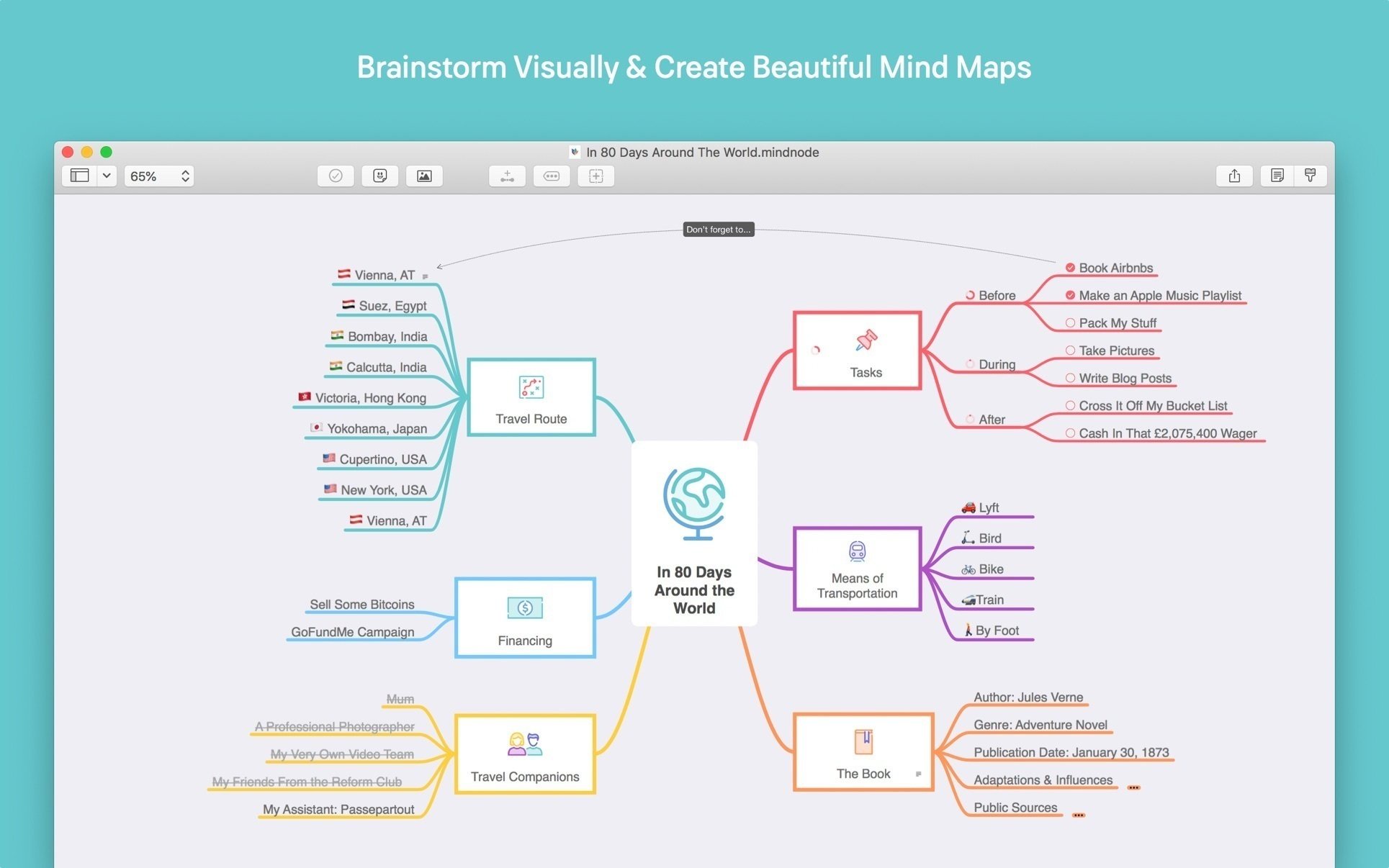 Applications MindNode 2025.5.2 by mac torrents August 30, 2025 August 30, 2025 ( MindNode 2025.5.2 )Loading... Download All great ideas start with a fleeting thought. Then another. And another. And a million more. MindNode helps you capture and organize those thoughts, turning the fragments into a clear picture. IT ALL STARTS WITH AN IDEA • Write down ideas Words, pictures, links, tasks, notes—any form will do to capture a thought. Don’t get distracted by layout! MindNode helps you express the ideas in your head and present them to the world. The Quick Entry feature lets you capture your thoughts in an instant. • Organize your thoughts As you delve deeper into a problem or topic, you begin to see new connections. Add or adjust your ideas at the speed of thought. Endlessly transfer ideas, create and break connections. Focus mode and collapsible branches provide the necessary level of concentration on one thought. • Create your own mind maps Personalize your mind map with unique template themes or create your own design style. With MindNode, it will look exactly as you imagined it – down to the smallest detail! And the Smart Layout feature will help you design your documents perfectly. • Share your vision of the world Easily share your documents with others or take them to the next step in the creative process. Create tasks for Apple Reminders, Things, or OmniFocus. Export projects as text, images, or rtf, docx, csv, opml, pdf, markdown, or TaskPaper documents. PRODUCTIVITY WHERE YOU ARE Take notes on the go or from the office using your iPhone, iPad, or Mac, or while working out using your Apple Watch. Save your documents to iCloud Drive and access them on any device. MAIN FEATURES • Save everything: text, images and links • Tasks: Turn your notes into tasks with a progress bar • Notes: Make a clear mind map and don’t forget even the smallest detail • Cross joins: connect records from different branches • Clear structure: display the entire mind map on one page and use search • Quick Input: Just start typing to save your thoughts • Template themes and unlimited personalization • Stickers: 260+ handmade stickers with customizable colors • Design: a variety of customization options for the smallest details of your document • Vertical and horizontal layouts • Collapsible branches: Collapse what is currently in the way • Focus mode: focus on a specific branch • Dark Theme: Record your nighttime thoughts • External screen support • Import tasks into Reminders, Things and OmniFocus • Export: text, images or rtf, docx, csv, opml, pdf, markdown, TaskPaper formats. • Sync with iCloud Drive Note- iCloud features not working Compatibility: macOS 15 and later ARM , x86 (64-bit) Homepage https://www.mindnode.com/ Screenshots Name: MindNode Next 2025.5.2_Mactorrents.Me.dmg Size: 117 MB Files MindNode Next 2025.5.2_Mactorrents.Me.dmg[117 MB] Download Torrent Related Posts:Sketch 2025.1.1Sketch 2025.1.3iReal Pro 2025.6Sketch 2025.1.2 Download 0 comment TwitterRedditEmail mac torrents Mac Torrents - Torrents for Mac. Free Apps, Games & Plugins. Apple Final Cut Pro & Logic Pro X, Adobe Photoshop, Microsoft Office, Pixel Film Studios, previous post Almighty 2.8.4 next post TabTab 2.0