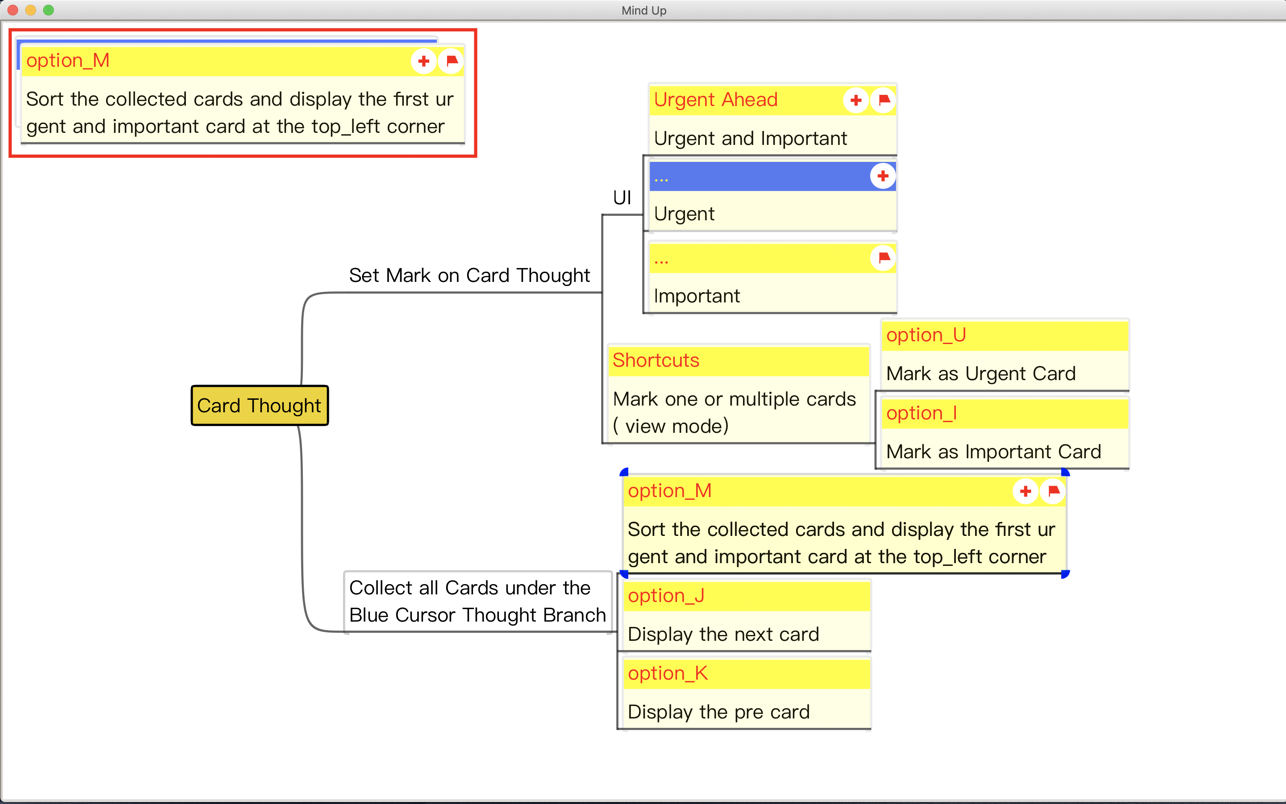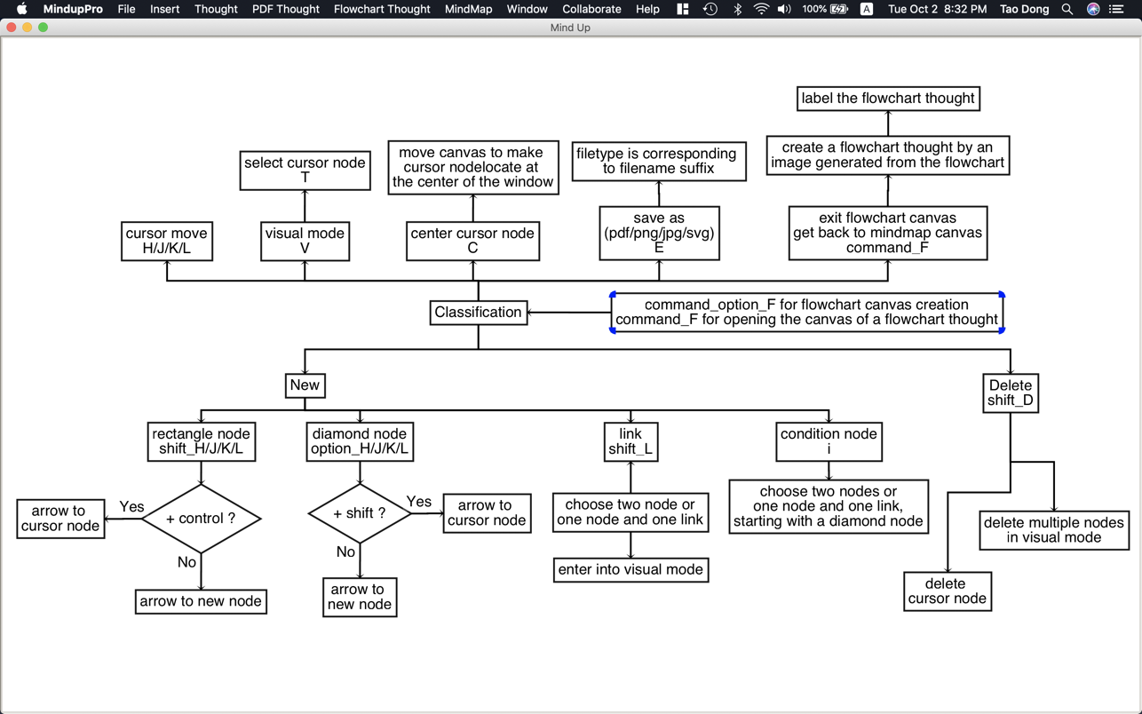 • Undo/Redo ( Command_u/Command_r) : works on all necessary operations ( such as deletion, cut/paste, copy/paste, modification, property setting, thought creation, merge/split, etc)