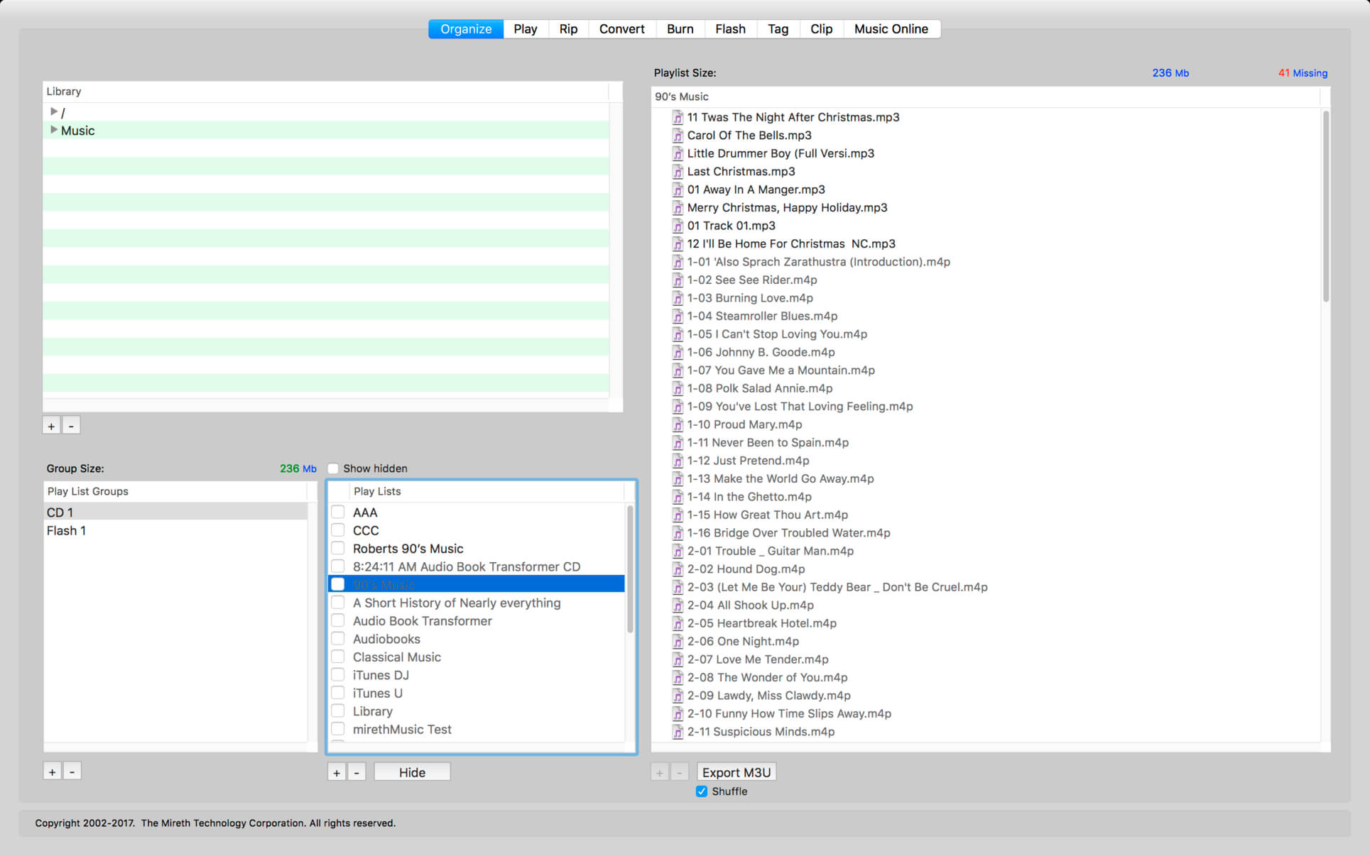 Discover the easy way to rip, convert, burn and play MP3, WAV, unprotected WMA, AAC, M4A, M4B, MP2, Ogg Vorbis, AIFF and midi on Mac OS. mirethMusic is easy to use and includes all the features you need from a converter, CD Ripper, CD Burner, Player, ID3 Tag editor. Convert most formats – MP3, WMA, FLAC, MIDI, WAV, AAC, M4A, M4B, AIFF, Ogg, MP2. Rip from CD. Burn to CD, DVD – Audio CD, MP3 CD, DVD Audio. Play everything from anywhere – music from hard drive, CD, USB Flash Drive. Edit tags. Make iPhone ringtones and make music clips.