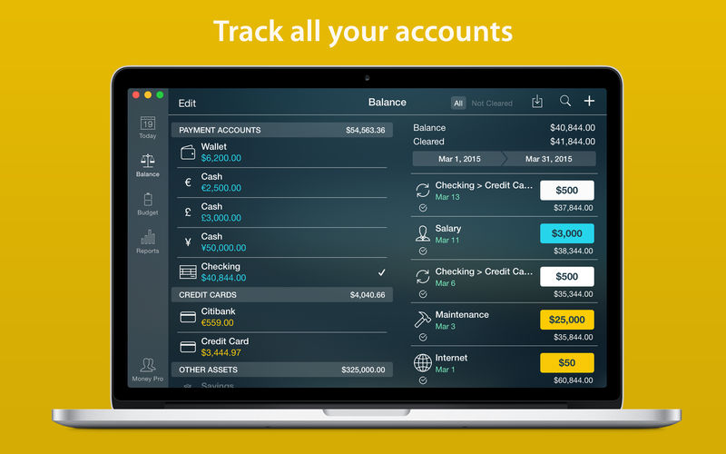 ApplicationApplicationsFinance Money Pro 2.11.23 February 15, 2026 ( Money Pro 2.11.23 )Loading... Download Money Pro is the one place for bill planning, budgeting and keeping track of your accounts. Easy sync with iPhone/iPad versions. Money Pro works great for home budgeting and even for business use. Calendar Mark days on the big calendar when your bills are due. Schedule recurring bills with custom periodicity. Filter transactions by selecting dates on the calendar. Today view Take a quick glance at bills due. When you actually have a transaction, approve it quickly. Money Pro predicts transactions for the day that may not have been scheduled manually. Bills due notifications A whole system of reminders will alert you of upcoming bills. Quick rescheduling option will help you deal with bills due (tomorrow, in 3 days, next week). Budgets Create budgeted entries, both for your income and expenses, and indicate budget limits for each entry. You can set different budget limits for every period, which is useful if you plan to reduce your spending gradually month by month. Start adding every transaction you have, and see progress of each category and the overall progress. Monitor visual indicators for budget overspending. Select the category you want to analyze and examine a budget trend chart generated on the fly. Budget rollover You can set budgets to transfer the leftover of the current period to the next budget period. Budget rollover limits your spending automatically if you overspent in previous periods. Checkbook register Unlimited number of accounts in one place (checking, savings, credit card, etc). Setting transactions as recurring or as one-time only. Balance change history. Additional fields for organizing your records including payee, description, check #, class (personal/business travel expenses). Attachment of receipt photos. Account reconciliation You can record transactions and clear them later on (reconcile). Automatically calculated available balance and cleared balance. Language: English, Spanish, Italian, German and others. Compatibility: macOS 10.12 or later, 64-bit processor Mac App Store https://geo.itunes.apple.com/app/id972572731 Screenshots Name: Money_Pro_2.11.23_Mac-torrents.Net.dmg Size: 48 MB Files Money_Pro_2.11.23_Mac-torrents.Net.dmg[48 MB] Download Torrent Related Posts:Money Pro 2.10.5Money Pro 2.10.4Money Pro 2.10.3Money Pro 2.10.2 Download 2.11.23MoneyPro 0 comment TwitterRedditEmail mac torrent MacTorrent - Torrents in Mac. Free Apps, Games & Plugins. Apple Final Cut Pro & Logic Pro X, Adobe Photoshop, Microsoft Office, Pixel Film Studios, previous post Hides 7.3.0 next post Steinberg VST Live Pro 3.0.20