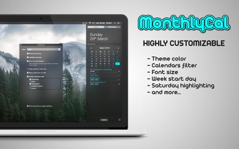 ApplicationsFreeMacMonthlyCalUtilities MonthlyCal 1.5.4 by mac torrents November 18, 2019 November 18, 2019 ( MonthlyCal 1.5.4 )Loading... Download Download MonthlyCal 1.5.4 MonthlyCal is a beautiful and colorful monthly calendar widget for OS X Yosemite. MonthlyCal supports gregorian’s calendar and it is almost localized in every language! With the new version you can click on a day to show the list of related events. Click on an event to show it in OS X Calendar app! MonthlyCal is a beautiful and colorful monthly calendar widget for OS X Yosemite. MonthlyCal supports gregorian’s calendar and it is almost localized in every language! With the new version you can click on a day to show the list of related events. Click on an event to show it in OS X Calendar app! FEATURES Monthly calendar Move to next and previous month Integration with OS X Calendar app (Enable it in preferences of main app) Click on a day to show the list of events! Click on an event to show it in OS X Calendar app or Fantastical™ 2! Customizable theme (Choose your color in preferences of main app) Weekdays are localized in every language. Support for Sunday or Monday as first weekday. AVAILABLE COLORS Pink Blue Aqua Green Electric Green Yellow Orange Red AUTO SETUP MonthlyCal gets settings automatically from your OS (Language, first weekday, ecc…) INSTRUCTIONS ENABLE WIDGET: Open Notification Center => Click Edit Button => Add MonthlyCal. THEME COLOR: Open main app => Open Preferences => Choose your color. EVENTS INDICATOR: Open main app => Open Preferences => Check “Show events indicator” => Allow MonthlyCal to access to your calendars. If “Show events indicator” is checked but you doesn’t see any indicator (A little dot on days with one or more events) open “OS X System Preferences” => Click “Security and Privacy” => Choose “Privacy” tab => Click “Calendar” => Flag “MonthlyCal”. *** MonthlyCal supports only Gregorian calendar *** *** The list of events is available only within the notification center’s widget *** *** The widget is localized in Chinese, English, French, German, Italian, Japanese, Korean, Portuguese, Russian, Spanish. App and Settings only in English and Italian *** Information Compatibility OS X 10.10 or later, 64-bit processor Languages English, French, German, Italian, Japanese, Korean, Portuguese, Russian, Simplified Chinese, Spanish, Traditional Chinese, Turkish Web Site Developer Website | Mac App Store What’s New in MonthlyCal 1.5.4 Support for macOS 10.15 Catalina Screenshots Name MonthlyCal 1.5.4 MAS HCiSO mac-torrents.net.zip Size 10.04 MB Created on 2019-11-19 06:43:30 Hash 2f5f0a8acf7ab9fd54dde0e6a764a98ea8b44e98 Files MonthlyCal 1.5.4 MAS HCiSO mac-torrents.net.zip (10.04 MB) Download Download Download MonthlyCal 0 comment TwitterRedditEmail mac torrents Mac Torrents - Torrents for Mac. Free Apps, Games & Plugins. Apple Final Cut Pro & Logic Pro X, Adobe Photoshop, Microsoft Office, Pixel Film Studios, previous post Folder-Factory 5.7.3 next post uBar 4.1.5