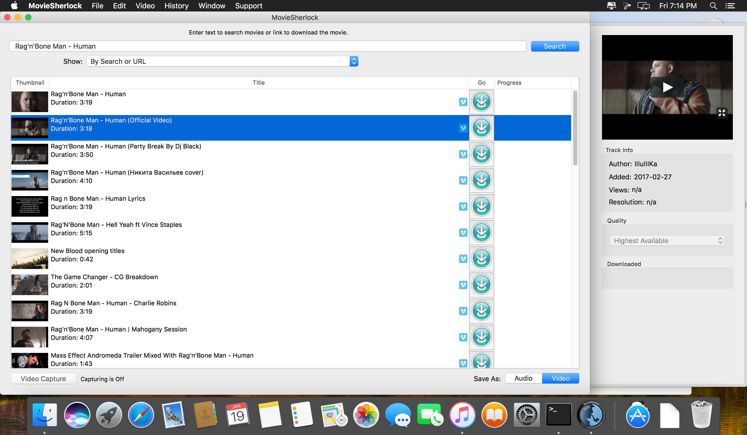 MovieSherlock allows you to download any video from YouTube and convert it on your Mac to a high-quality MP4 video that is playable in iTunes or your favorite video player. MovieSherlock supports both HD (High Definition) and SD (Standard Definition) video from YouTube. However.