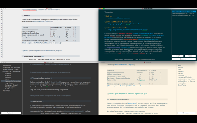 Applications MultiMarkdown Composer 4 Pro 4.5.12 by mac torrent December 29, 2019 December 29, 2019 ( MultiMarkdown Composer 4 Pro 4.5.12 )Loading... Download MultiMarkdown Composer 4 Pro 4.5.12 MAS + InApp MultiMarkdown Composer was the first text editor specifically designed for writing in MultiMarkdown (or regular Markdown), and now there is a completely new version with improved performance and features. ## Pro Upgrade * Automatic text expansion — expand shortcuts for commonly used text blocks * Custom keyboard commands and macros — customize Composer to suit your needs! * Share extras files (themes, CSS, expansions) between multiple machines so you have a consistent environment on each * History undo mode — increased flexibility in undo/redo of changes while working on a document * Control over undo coalescing — you control whether undo works by the character, sentence, or paragraph * Control depth of the table of contents sidebar for easier navigation * More features planned for the future — stay tuned for updates Top In-App Purchases : Pro Version – included. Compatibility: OS X 10.11 or later 64 bitHomepage https://geo.itunes.apple.com/app/id1275176220 Screenshots Name: MultiMarkdown_Composer_Pro_4.5.12_MAS_In-App_Mactorrents.io.dmg Size: 8 MB Files MultiMarkdown_Composer_Pro_4.5.12_MAS_In-App_Mactorrents.io.dmg[8 MB] Download Download Composermac torrentmac torrentsMultiMarkdownPro 0 comment TwitterRedditEmail mac torrent MacTorrent - Torrents in Mac. Free Apps, Games & Plugins. Apple Final Cut Pro & Logic Pro X, Adobe Photoshop, Microsoft Office, Pixel Film Studios, previous post Yate 5.0.3.3 next post Amadeus Pro 2.7 (2271)