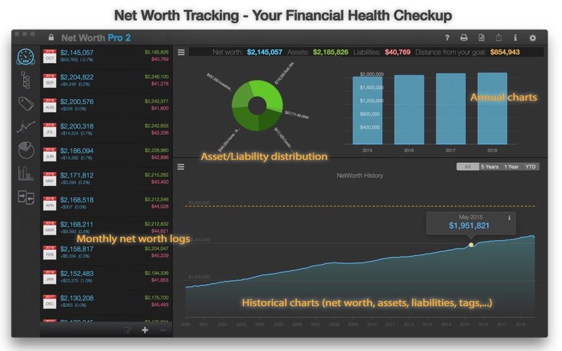 Name: NetWorth_Pro_2_v3.4.2__HCiSO_Mactorrents.io.dmg Size: 26.04 MB Files NetWorth_Pro_2_v3.4.2__HCiSO_Mactorrents.io.dmg[26.04 MB] Download Net worth: the most important number in your personal finance. Tracking your Net Worth gives you the most accurate picture of your complete financial health. It is a snapshot of your financial life at one moment in time, a single number representing your financial health. Are you tired of using money management software that requires you to track all your transactions? Stop entering information into these programs. Categorizing all your spending transaction by transaction isn’t a good use of your time. It is just too much work to get a picture of your month-to-month money flow. What’s New: Version 3.4.0: This version includes support for macOS Big Sur and compatibility with Apple Silicon machines. Fixed an issue with net worth log amounts being partially hidden by a scroll bar. Compatibility: macOS 10.12 or later 64-bit Homepage https://theblueplum.com Screenshots