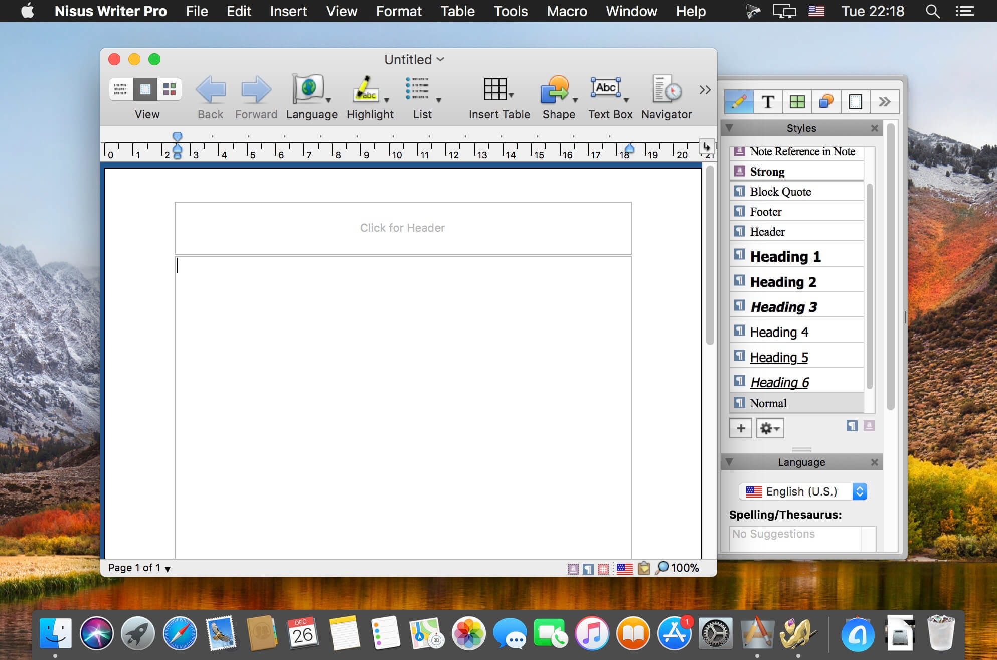 Nisus Writer Pro is a powerful multilingual word processor, similar to its entry level products, but brings new features such as table of contents, indexing, bookmarks, widow and orphan control, cross references, line numbering, and text wrap around images.
