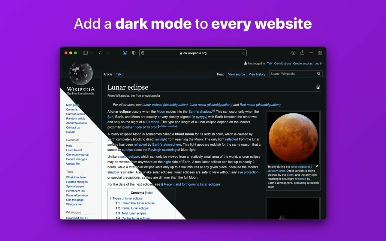 ApplicationApplicationsTools & Utilities Noir – Dark Mode for Safari 2026.1.1 March 12, 2026 ( Noir – Dark Mode for Safari 2026.1.1 )Loading... Download Noir is a Safari extension that automatically adds a dark mode to every website you visit. It makes browsing the web at night so much better. With Noir, you won’t be blinded by bright websites ever again. And the results look great too. Noir generates a custom dark style for each website you visit, based on the colors that are used on a page. You won’t even notice this happening in the background – that’s how fast it is – but you’ll certainly appreciate the end result: a beautiful dark mode tailored for each website, where contrast is preserved and highlights still pop. Noir works with any website you visit in Safari, automatically. By default, Noir is linked to your device’s Dark Mode, so websites will only go dark when you want them to. But you can easily customize this to your liking, even per website. Only want to use Noir on just a few specific websites? Sure thing! Disable Noir on some websites? No problem! The app feels right at home on your device. It is a Safari extension, which means there’s no need to manually activate it every time you load a new page. The app also tightly integrates with system features such as Shortcuts to fully integrate Noir in all your workflows. And your settings are automatically synced to all your devices using iCloud. And just as importantly, Noir takes your privacy seriously: it doesn’t collect any of your browsing data. Period. Compatibility: macOS 12.0 or later Mac App Store https://apps.apple.com/pk/app/noir-dark-mode-for-safari/id1592917505?mt=12&uo=4 Screenshots Name: Noir_2026.1.1.dmg Size: 12 MB Files Noir_2026.1.1.dmg [12 MB] Download Torrent Related Posts:Noir – Dark Mode for Safari 2026.1Noir – Dark Mode for Safari 2024.1.2Noir – Dark Mode for Safari 2024.1.9Noir – Dark Mode for Safari 2024.1.1 Download 2026.1.1DarkModeNoirSafari 0 comment TwitterRedditEmail mac torrent MacTorrent - Torrents in Mac. Free Apps, Games & Plugins. Apple Final Cut Pro & Logic Pro X, Adobe Photoshop, Microsoft Office, Pixel Film Studios, previous post MacX MediaTrans 8.3.0