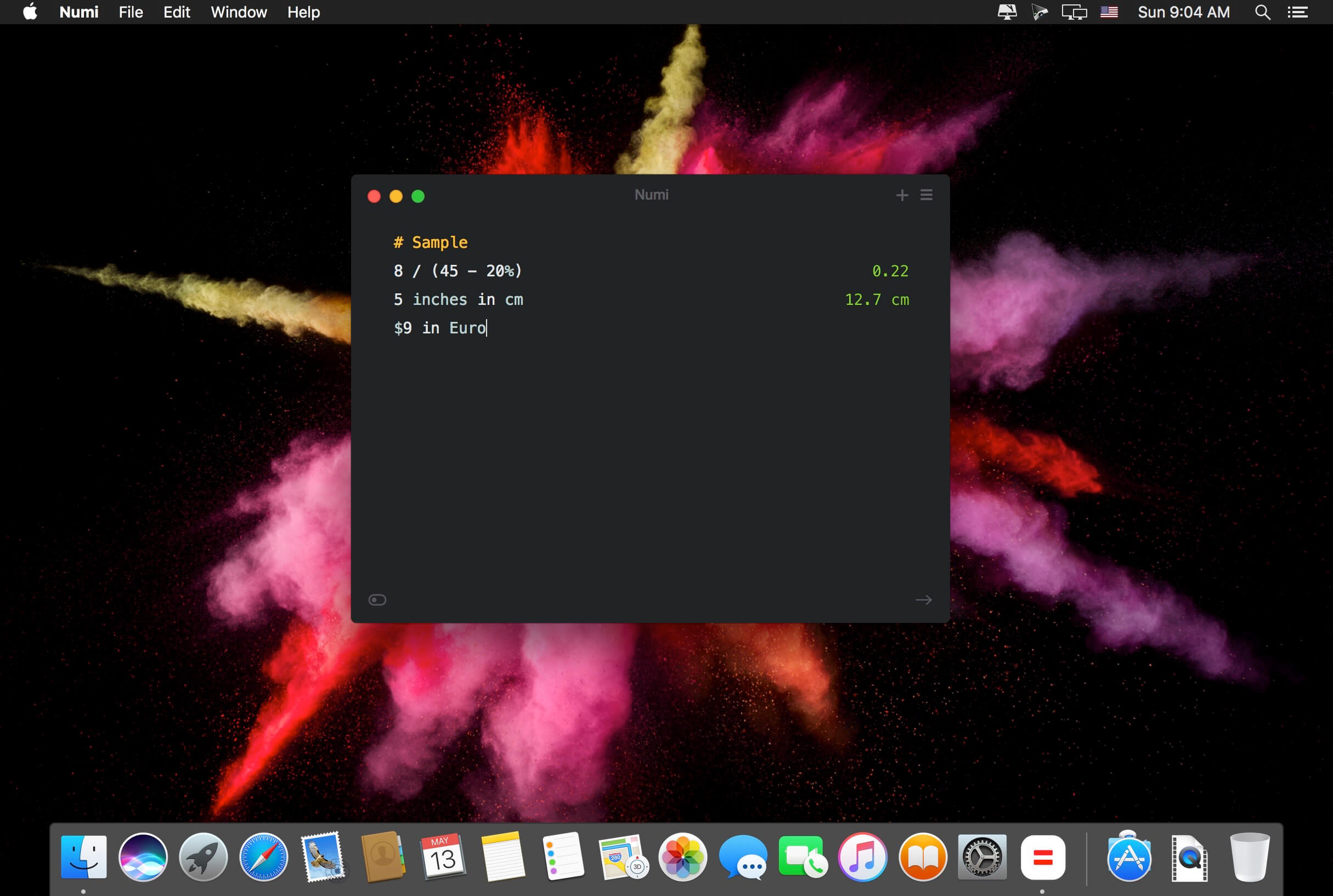 • Unit converter: Numi supports currency, length, area, volume, time, temperature, and data size. It automatically convert units if it’s needed.