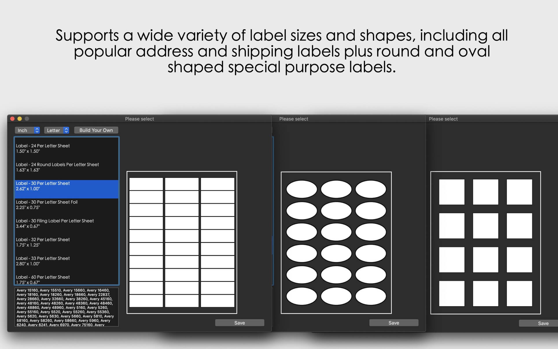 – New label template sizes