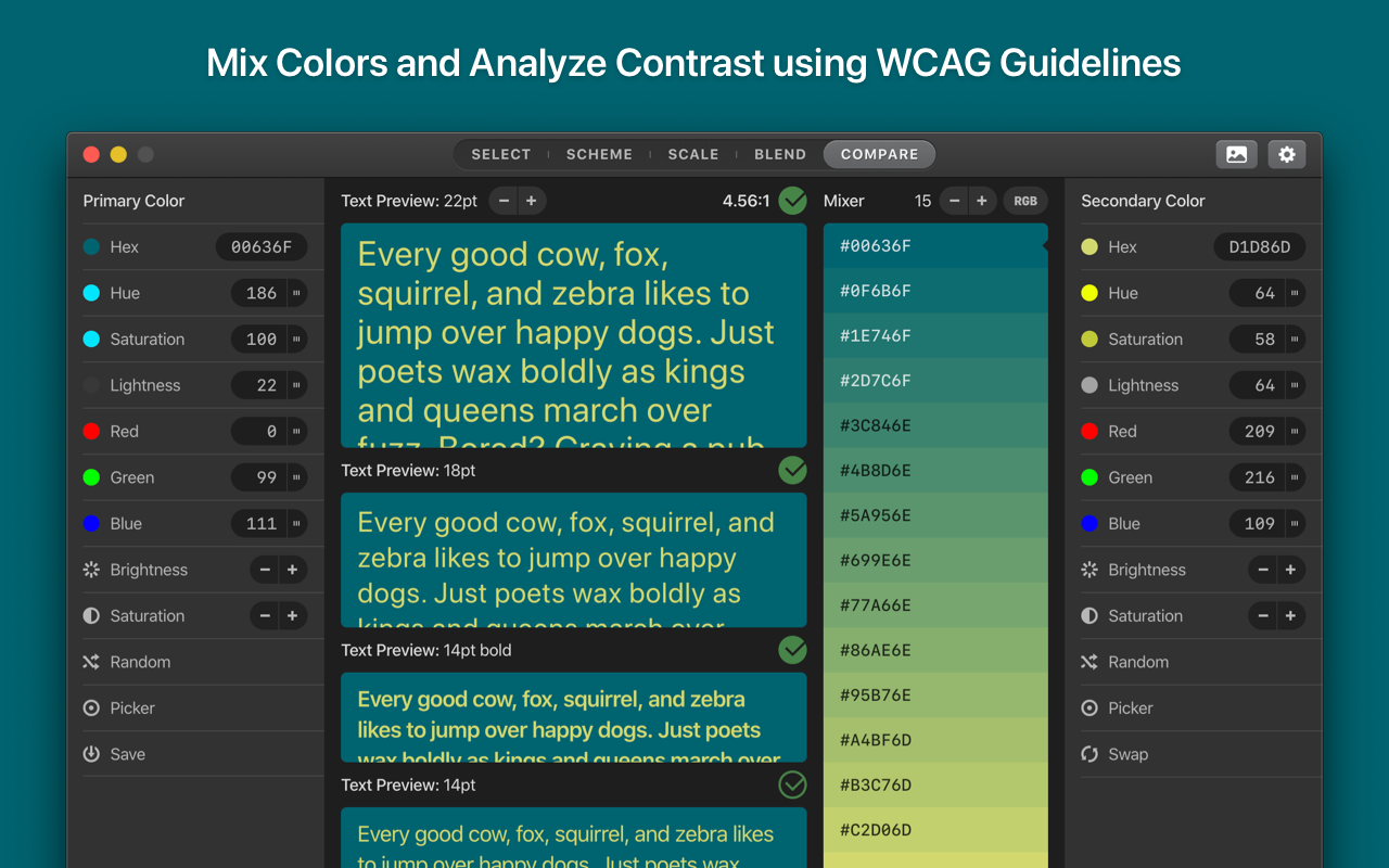 ApplicationsGraphics & Design Paletter 4.1.0 by mac torrent March 24, 2021 March 24, 2021 ( Paletter 4.1.0 )Loading... Download The hardest thing in design might just be choosing colors. Paletter is here to make your life easier by helping you discover and create beautiful color combinations. Get Back to the Core of Color Theory • Triad • Tetrad • Analogous • Monochromatic • Complementary • Split complementary • Shades • Tones • Tints Insanely Handy • Click on a color to set it in focus • Right click on a color to copy • Hold the F, W, G, or B key for a surprise • Mix colors and perform WCAG contrast analysis • Customize the display and copy settings Made for Mac People • Cached undo/redo for up to 100 colors • Dark Mode support • Touch Bar support • Works offline Compatibility: OS X 10.10 or later Mac App Store https://apps.apple.com/app/paletter-4/id1494948845 Screenshots Name: Paletter_4.1.0_MAS__HCiSO_Mactorrents.io.dmg Size: 76 MB Files Paletter_4.1.0_MAS__HCiSO_Mactorrents.io.dmg[76 MB] Download Download 0 comment TwitterRedditEmail mac torrent MacTorrent - Torrents in Mac. Free Apps, Games & Plugins. Apple Final Cut Pro & Logic Pro X, Adobe Photoshop, Microsoft Office, Pixel Film Studios, previous post 18 Strings 2021.1 next post RapidWeaver 8.8 (20865)