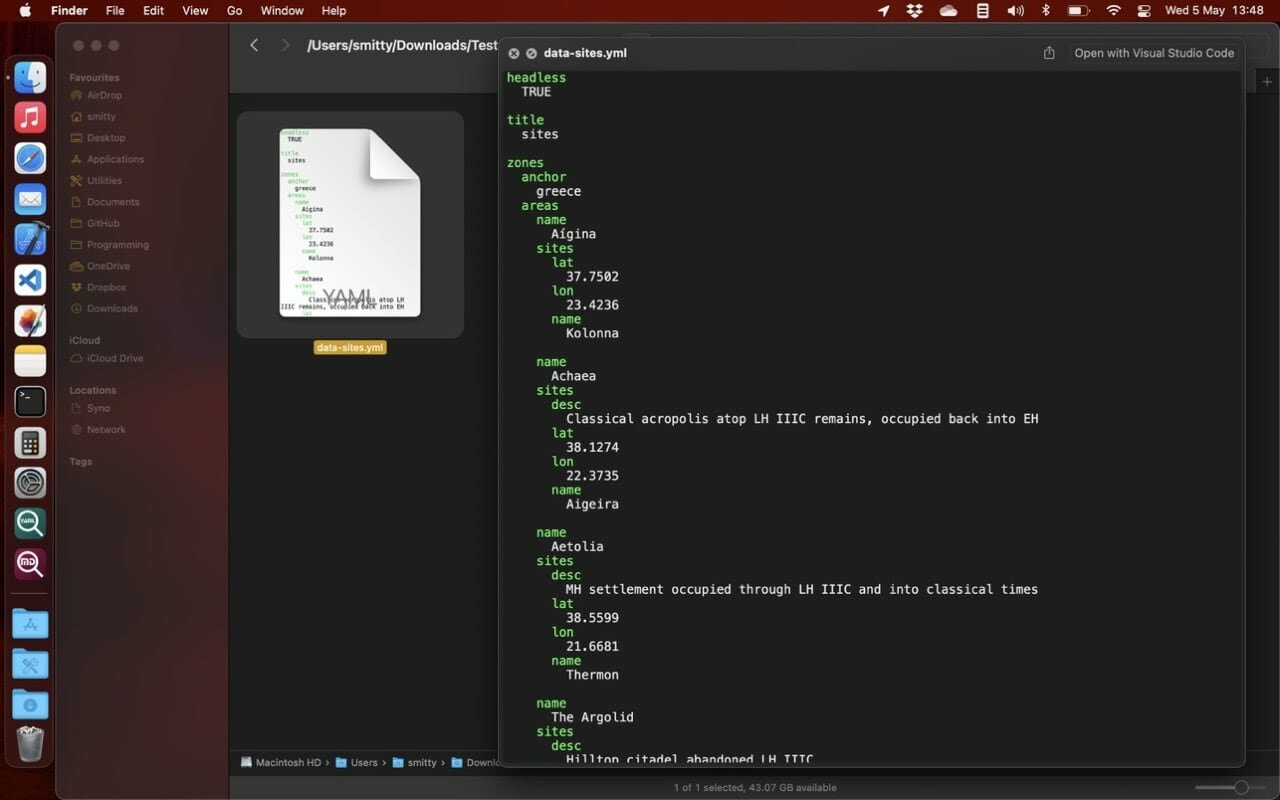 PreviewYaml provides QuickLook file previews and file icon thumbnails for documents created using the popular YAML structured data format.