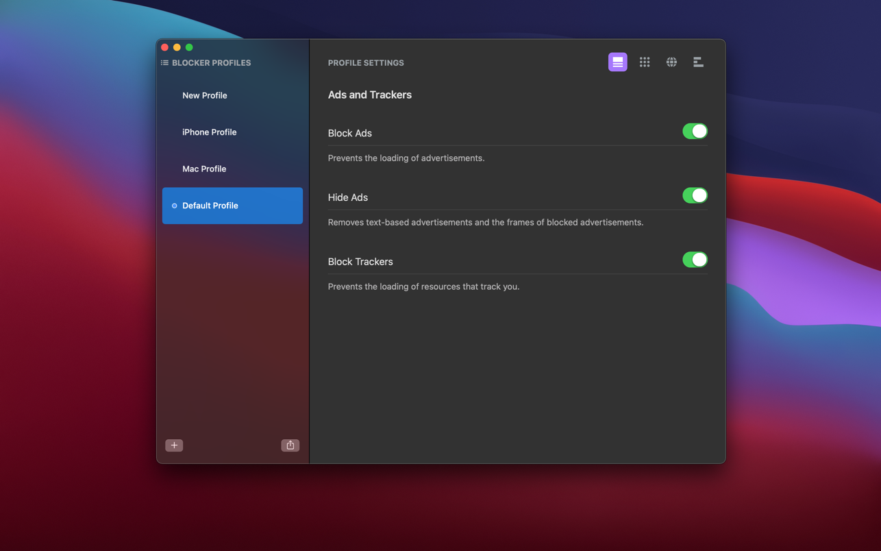 Roadblock is available for Mac, iPhone, and iPad. Profiles and settings sync seamlessly across all devices.