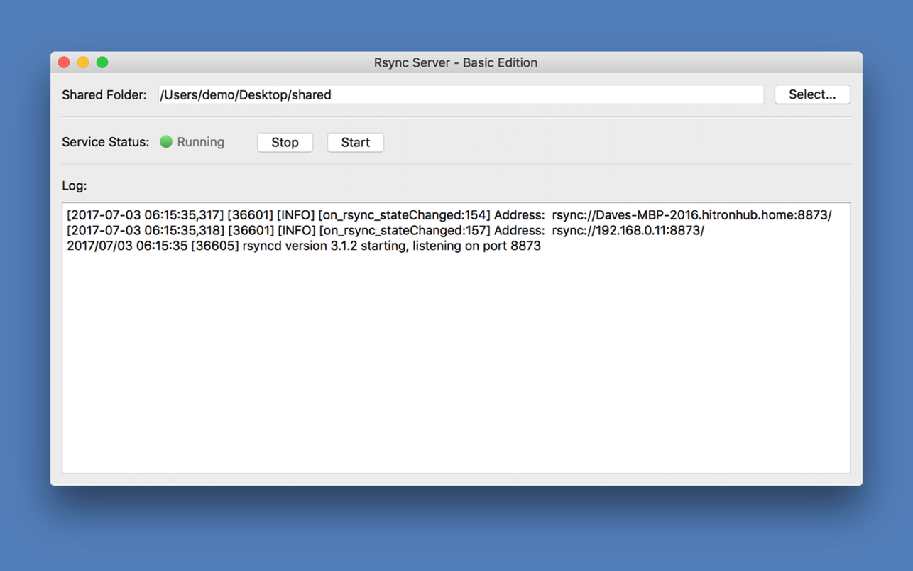 – Connect to the shared folder using the native rsync protocol.