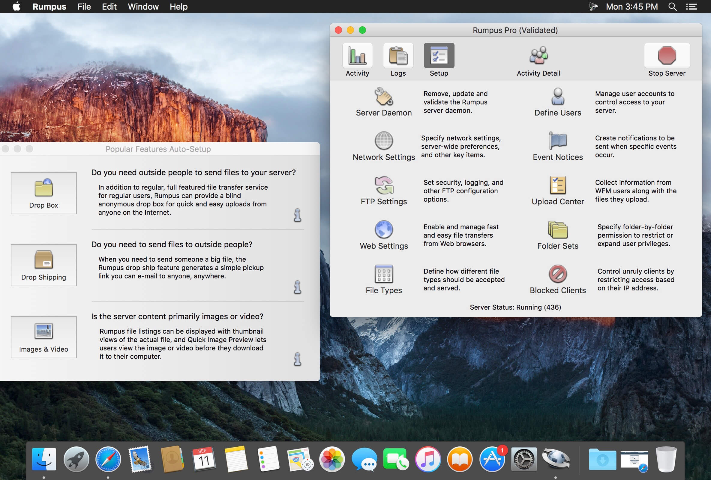 Ease Of Use And Maintenance Rumpus is, quite simply, the easiest FTP server on the planet to set up and administer. From the setup assistant that fully prepares the server to accept users to the logically designed server management windows, Rumpus makes running an FTP server easy.
