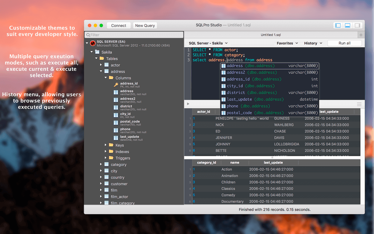 ApplicationApplicationsTools & Utilities SQLPro Studio 2026.0.7 February 17, 2026 ( SQLPro Studio 2026.0.7 )Loading... Download A simple, powerful database manager for macOS – SQLPro Studio is the premium database management tool for Postgres, MySQL, Microsoft Management Studio and Oracle databases. Multiple database support SQLPro supports many database types including MySQL, MariaDB, Postgres, Microsoft SQL Server (2005 and above) and Oracle (8i and above). BEST AT THE BASICS Table creation, custom queries, auto-complete and syntax highlighting are just some of the features you can expect. Updating or designing a table? We can help you out. INTUITIVE INTERFACE SQLPro boasts an intuitive interface, where the most basic to advanced database needs are easily accessible. CLOUD SUPPORT Working with cloud providers such as Amazon relational database service, Microsoft Azure or Heroku? No problem, SQLPro Studio supports most cloud based instances. MULTIPLE RESULT SETS Need to see the results for multiple tables at once? You can execute multiple queries and have the results for each displayed at the same time, including any errors and messages. NO JAVA REQUIRED SQLPro is a 100% native Mac app. This means it can and will outperform any of the other Java based database management interfaces. SINGLE CELL SELECTION Work with results using single (or multi) cell selection, similar as a spreadsheet. Rather than requiring full-row selection as many other tools use, SQLPro allows you to select one or more cells at a time. Compatibility: macOS 13.5 or later Homepage http://www.sqlprostudio.com Screenshots Name: SQLPro_Studio_2026.07.dmg Size: 53 MB Files SQLPro_Studio_2026.07.dmg [53 MB] Download Torrent Related Posts:Apple Creator Studio 2026.01SQLPro Studio 2024.12SQLPro Studio 2023.60SQLPro Studio 2023.35 Download 2026.0.7SQLProStudio 0 comment TwitterRedditEmail mac torrent MacTorrent - Torrents in Mac. Free Apps, Games & Plugins. Apple Final Cut Pro & Logic Pro X, Adobe Photoshop, Microsoft Office, Pixel Film Studios, previous post Wondershare Recoverit 14.0.12.11 next post Fork 2.63.1
