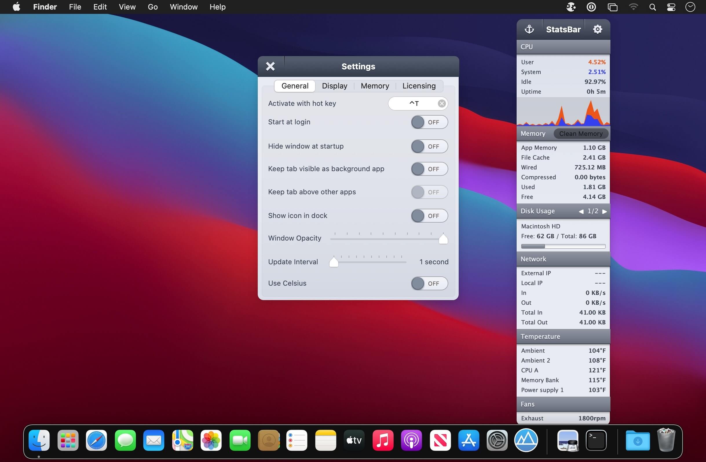 Applications StatsBar 2.9 by mac torrent June 14, 2021 June 14, 2021 ( StatsBar 2.9 )Loading... Download StatsBar gives you a comprehensive and detailed analysis of the following areas of your Mac: CPU usage Memory usage Disk usage Network and bandwidth usage Battery power and health (MacBooks only) Monitoring these stats allows you to easily keep a check on your Mac’s health and performance. Additional features Memory Clean feature to free up used RAM Run the app either in menubar mode or dock mode Customizable hotkey support to quickly launch the app Program app to launch at login Opacity control (can toggle the transparency of the app) Anchor button to keep the app locked on screen and above all other programs Gorgeous Retina graphics What’s New: Version 2.9: Release notes were unavailable when this listing was updated. Compatibility: macOS 10.9 or later. Homepage https://fiplab.com/apps/statsbar-for-mac Screenshots Name: StatsBar_2.9__HCiSO_Mactorrents.io.dmg Size: 7.26 MB Files StatsBar_2.9__HCiSO_Mactorrents.io.dmg[7.26 MB] Download Download 0 comment TwitterRedditEmail mac torrent MacTorrent - Torrents in Mac. Free Apps, Games & Plugins. Apple Final Cut Pro & Logic Pro X, Adobe Photoshop, Microsoft Office, Pixel Film Studios, previous post Scherlokk 4.3 (43008) next post Easy Data Transform 1.17.0