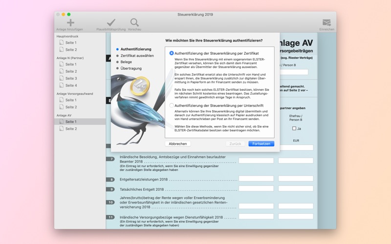 ApplicationsFinanceSteuererklarung Steuererklarung 2.10.1 by mac torrents November 25, 2019 November 25, 2019 (Steuererklarung 2.10.1 (1) Reviews )Loading... Download Download Steuererklarung 2.10.1 Mit „Steuererklärung“ reichen Sie im Handumdrehen per ELSTER Ihre Einkommensteuererklärung ein – so einfach wie der Name der App verspricht. Warum gibt es vom Finanzamt eigentlich keine Steuersoftware für den Mac? Das weiß niemand so genau, aber die gute Nachricht ist: Es gibt endlich Ersatz! Mit „Steuererklärung“ reichen Sie im Handumdrehen per ELSTER Ihre Einkommensteuererklärung ein – so einfach wie der Name der App verspricht. Auch Unternehmer und Freiberufler kommen nun ohne teure Steuersoftware aus: Die App unterstützt sowohl die Umsatzsteuer-Voranmeldung als auch die Abgabe von Gewerbesteuererklärung, Umsatzsteuererklärung, Einnahmenüberschussrechnung (EÜR) und Zusammenfassender Meldung (ZM). Wenn Sie auf der Suche nach einer kostengünstigen und eleganten Alternative zu den oft unnötig aufgeblähten und trägen Steuerprogrammen der Vergangenheit sind, dann haben Sie sie gefunden: „Steuererklärung“ ist eine übersichtliche und einfach zu bedienende App, die ihren Funktionsumfang ganz Mac-typisch auf’s Wesentliche fokussiert. Damit Sie sich gleich zurechtfinden, ist die App den offiziellen Papiervordrucken nachempfunden. Bei der Eingabe Ihrer Steuerdaten steht Ihnen zu vielen Fragen eine umfangreiche Ausfüllhilfe zur Seite. Und die eingebaute Plausibilitätsprüfung stellt vor dem Absenden sicher, dass alles vollständig ausgefüllt ist. Dann wird Ihre Steuererklärung von der App online an das Finanzamt übermittelt, sicher verschlüsselt und amtlich anerkannt per ELSTER. Sie müssen nur noch den unterschriebenen Ausdruck nachreichen – fertig! 1. Jahrespaket 2019 ✓2. Jahrespaket 2018 ✓3. Jahrespaket 2017 ✓4. Jahrespaket 2016 ✓5. Jahrespaket 2015 ✓6. Jahrespaket 2014 ✓7. Jahrespaket 2013 ✓ What’s new in Steuererklarung 2.10.1 Dieses Update enthält die neuen Formulare für das Steuerjahr 2019/20 Screenshots Name Steuererklaerung 2.10.1 MAS In-App [TNT] mac-torrents.net.zip Size 86.32 MB Created on 2019-11-25 19:18:57 Hash 83815b52a46d2f0fd721ec71907537163786a865 Files Steuererklaerung 2.10.1 MAS In-App [TNT] mac-torrents.net.zip (86.32 MB) Download Download mac torrentmac torrentsSteuererklarung 0 comment TwitterRedditEmail mac torrents Mac Torrents - Torrents for Mac. Free Apps, Games & Plugins. Apple Final Cut Pro & Logic Pro X, Adobe Photoshop, Microsoft Office, Pixel Film Studios, previous post RightFont 5.8.0 next post Navicat Premium 15.0.3