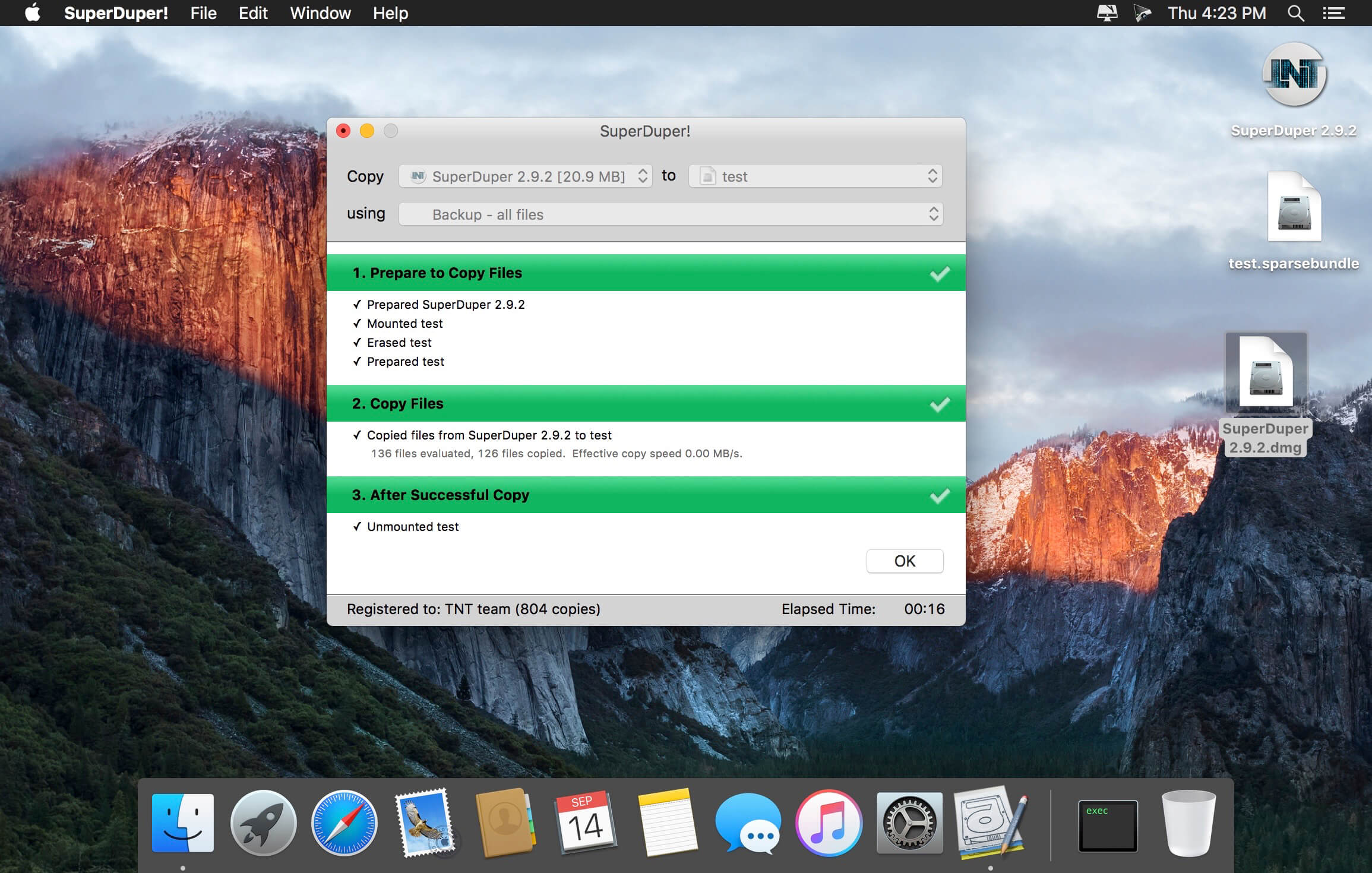 ApplicationsUtilities SuperDuper! 3.6.2 by mac torrent May 19, 2022 May 19, 2022 ( SuperDuper! 3.6.2 )Loading... Download SuperDuper! is an advanced, yet easy to use disk copying program. It can, of course, make a straight copy, or “clone” — useful when you want to move all your data from one machine to another, or do a simple backup. In moments, you can completely duplicate your boot drive to another drive, partition, or image file. Clones for safety. To ensure you can safely roll back a system after the unexpected occurs. With a few clicks, you can easily “checkpoint” your system, preserving your computer’s critical applications and files while you run on a working, bootable copy. If anything goes wrong, just reboot to the original. When you do, your current Documents, Music, Pictures — even iSync data — are available! You can get back to work immediately. Clones for industry! SuperDuper has enough features to satisfy the advanced user, too. Its simple-but-powerful Copy Script feature allows complete control of exactly what files get copied, ignored, even aliased (“soft linked” for the Unix inclined) from one drive to another. Compatibility: OS X 10.10 or later Homepage http://www.shirt-pocket.com/SuperDuper/SuperDuperDescription.html Screenshots Name: SuperDuper_3.6.2.[TNT]_Mactorrents.io.zip Size: 11.42 MB Files SuperDuper_3.6.2.[TNT]_Mactorrents.io.dmg[11.42 MB] Download Related Posts:SuperDuper! 3.7.2 Download 0 comment TwitterRedditEmail mac torrent MacTorrent - Torrents in Mac. Free Apps, Games & Plugins. Apple Final Cut Pro & Logic Pro X, Adobe Photoshop, Microsoft Office, Pixel Film Studios, previous post Website Watchman 3.1.3 next post Omni Toolbox 1.1.9