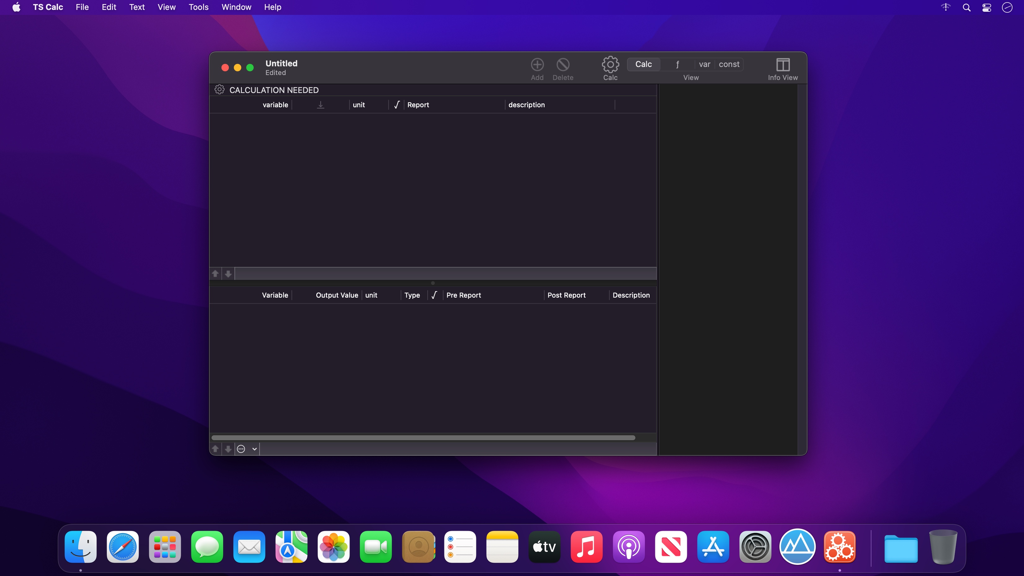 The mathematical equations tool. TS Calc implements numeric resolution of calculation models you can use for any mathematical technical problems. It is a complete different approach to solve math problems respect to the usual one using a spreadsheets.