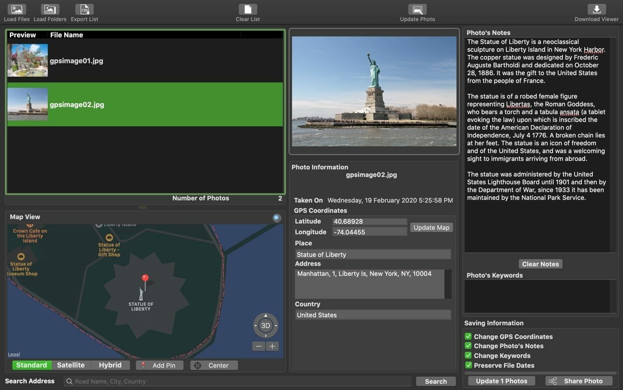 Memory Pictures is an OS X app which lets you do just that. Photos taken from digital cameras come supported with a wide varied amount of information about all the settings used to take the picture with the EXIF header. Nested within the EXIF header is the GPS Coordinates and User’s Comment settings. Memory Pictures supports JPEG, HEIC photos, PNG, TIFF and RAW photos formats which includes Adobe RAW (DNG), Canon RAW (CR2 & CR3), Fujifilm RAW (RAF), Hasselblad RAW (3FR), Mamiya RAW (MEF), Minolta RAW (MRW), Nikon RAW (NEF & NRW), Olympus RAW (ORF), Panasonic RAW (RW2), Pentax RAW (PEF) and Sony RAW (SR2 & ARW).