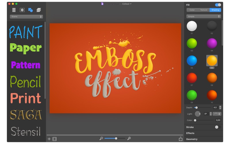 Tweak text finishing with a variety of masks to render an aged text or a scratched look. You may also want to add a stamped effect with just one click. Easily experiment with settings, and combine masks with other effects, to get a somewhat unexpected but impressive result.
