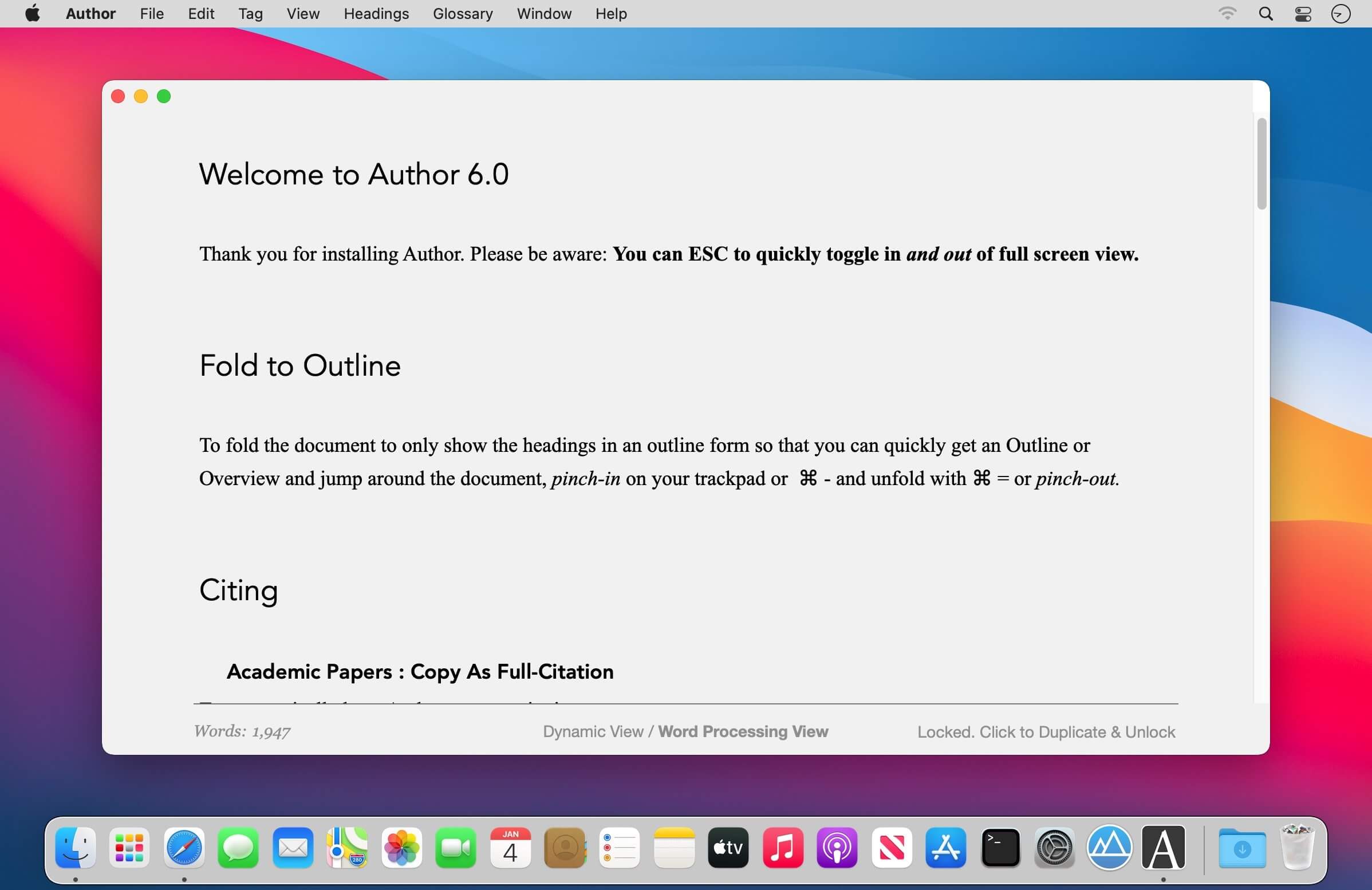 - Makes Author fast and gives you auto saving and everything else you would expect from a modern, native macOS application including iCloud Drive (sync with Author iOS in the future)