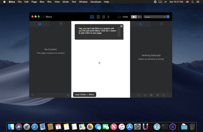 Blocs for Mac is a fast, easy-to-use, powerful visual web-design tool that lets you create beautiful, modern websites without the need to write code. Cleverly designed to accommodate complete beginners or those familiar with web design. You will love building with Blocs.