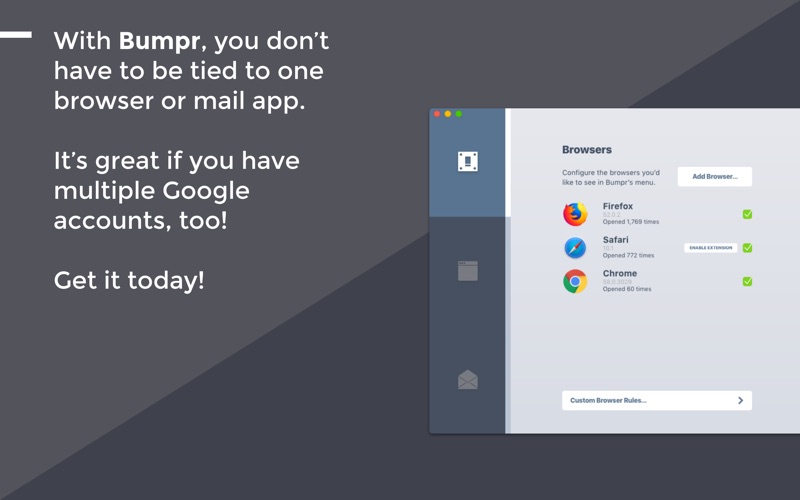 Bumpr is particularly effective if you use more than one browser to run separate Google accounts, for cross-browser testing, to keep certain kinds of browsing activities restricted to certain browsers, and more. Its email handling is great if you use separate email clients for different email accounts.