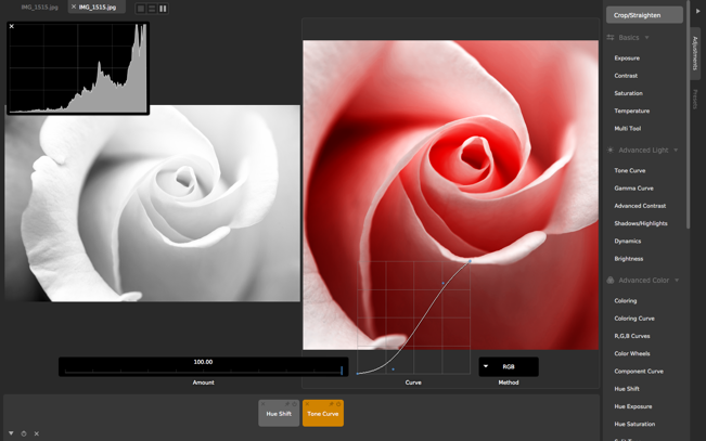 Unique curve tools, adjustment re-ordering and layering, and large precise controls let you do things you simply can’t do in other popular software.