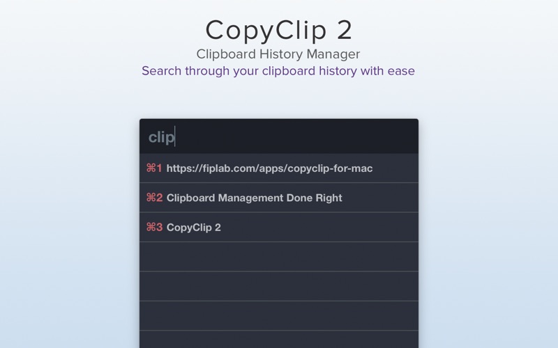 CopyClip 2 is the slickest and most efficient premium clipboard manager for your Mac. Running discreetly from your menu bar, the app stores all text that you have copied or cut in the past, allowing you to quickly find that snippet of text you’ve been looking for.