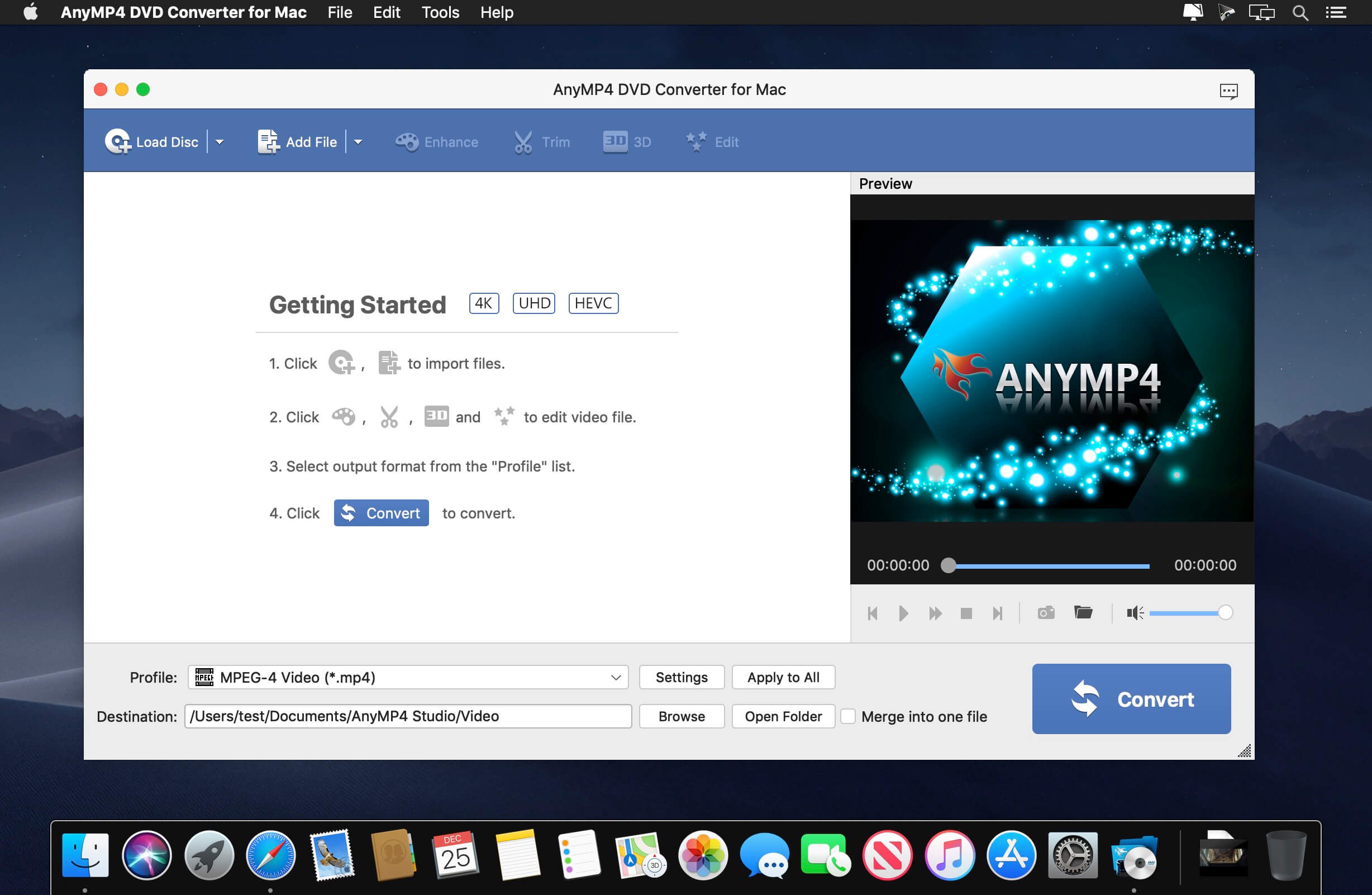 AnyMP4 DVD Ripper for Mac is capable of converting almost all DVDs including copy-protected DVDs to popular SD or HD video formats, such as MOV, AVI, MPEG, MP4, WMV, FLV, MKV, 3GP, VOB, DivX, and ASF, etc. on Mac at super fast speed. With just a few clicks, you can convert the DVD to your favorite video, so you can play and enjoy your DVD at home with a variety of devices.