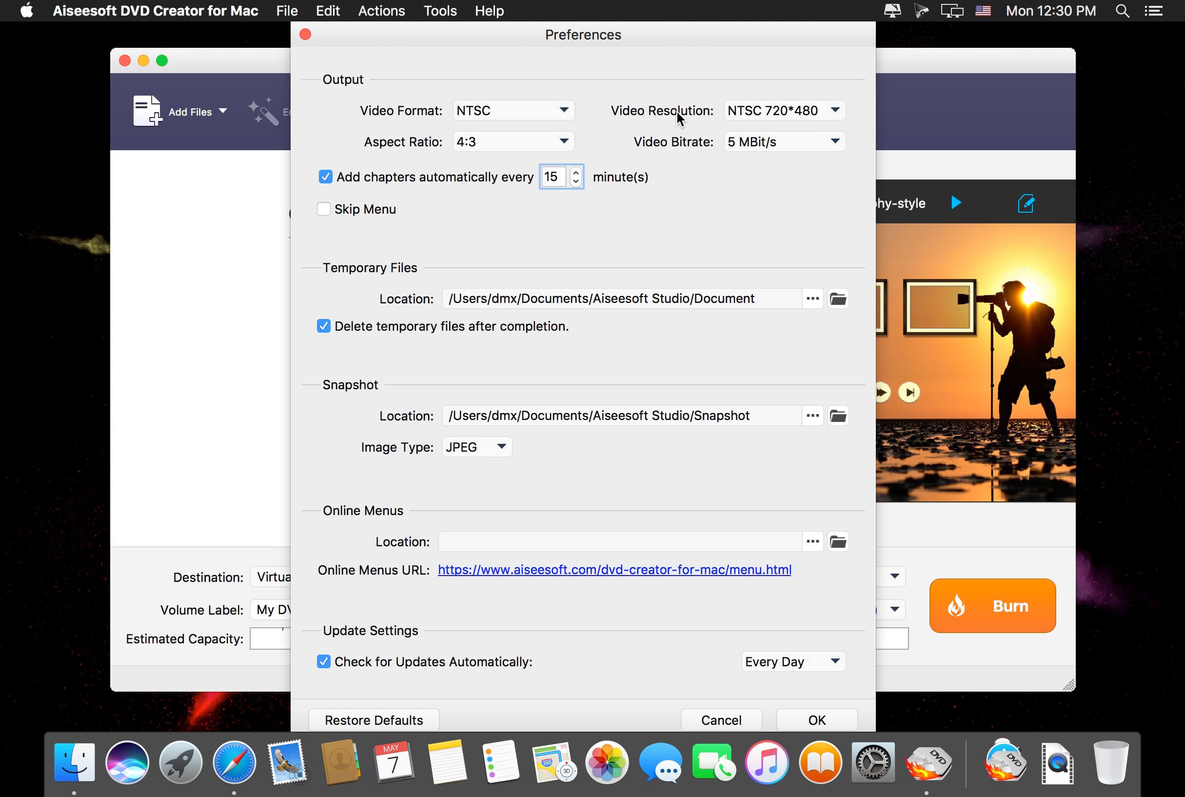 Create personalized DVD with popular videos on Mac. When you use this Mac DVD Creator to burn videos to a DVD disc, you can create your own custom menu. Here you can select and set the ideal menu frame, key and desired menu template from the menu window. In addition, this Mac DVD Burner also allows you to add background music or image from the local hard drive and make opening movie for your own DVD. In this respect,