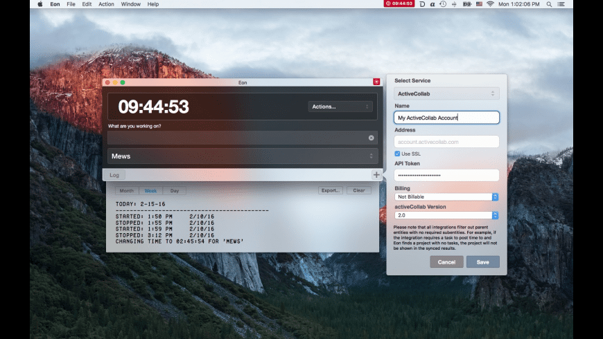 Eon helps you easily track time on your Mac. Eon allows you to easily post time to several services to make invoicing as painless as possible.