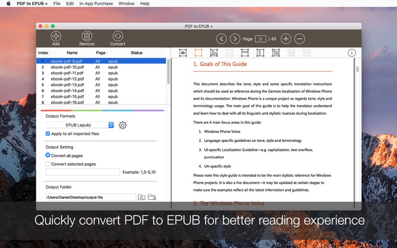 – Support EPUB to PDF, Mobi to EPUB, Mobi to PDF.