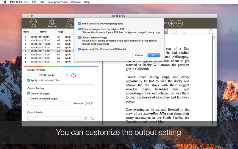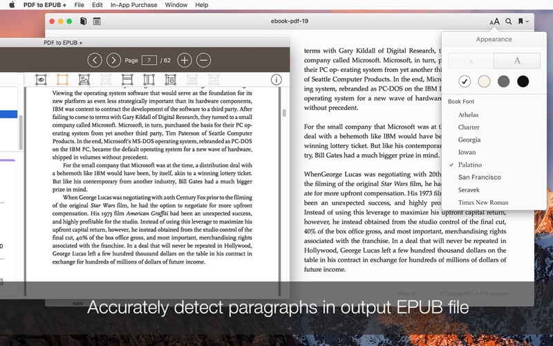 • PDF to EPUB will analyze PDF data first, detect paragraphs and organize them into EPUB accurately. Even when the PDF has multiple columns, the app can also convert the content correctly.