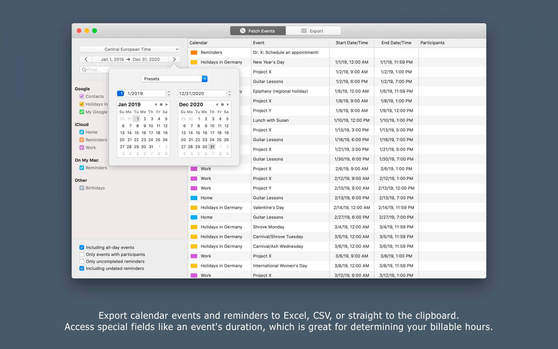 You can select a specific kind of file to list. For example, you can choose to export to Excel a list with all the audio files of your iTunes Music folder or all the pdf files from your Documents folder.
