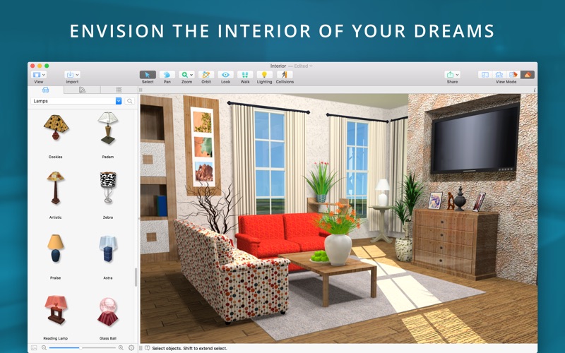 - Walk through your 3D interior.