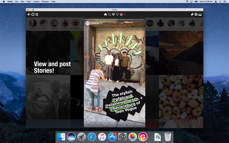 Grids brings the best Instagram experience to your Mac, with Stories (first and only app that supports stories!), Direct Message and Large/Fullscreen photo and video viewing.