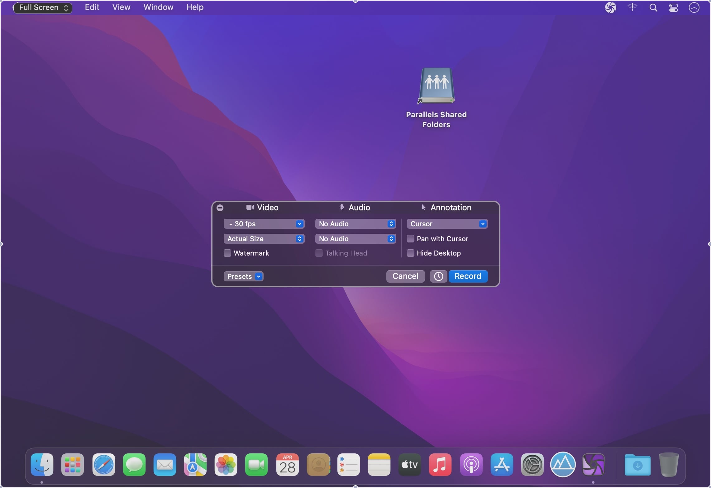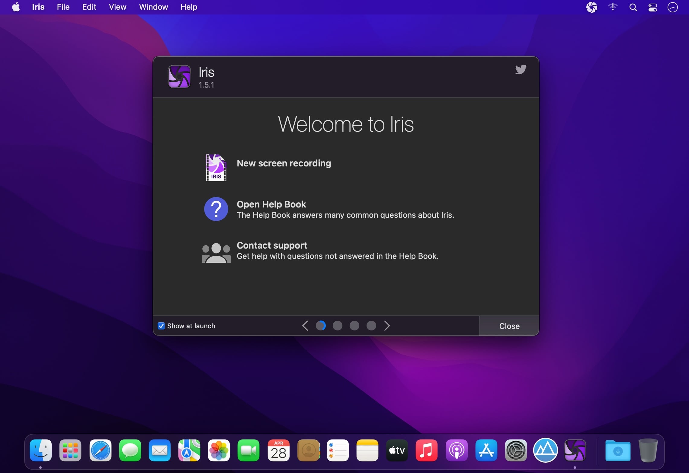 Iris is a high-performance screen recorder that records to h.264. Iris leverages on-board GPU acceleration when available. It can optionally include video from a camera and up to two microphones. Iris is free to try with a watermark embedded in recordings. Use the in-app purchase to remove watermark from new recordings.
