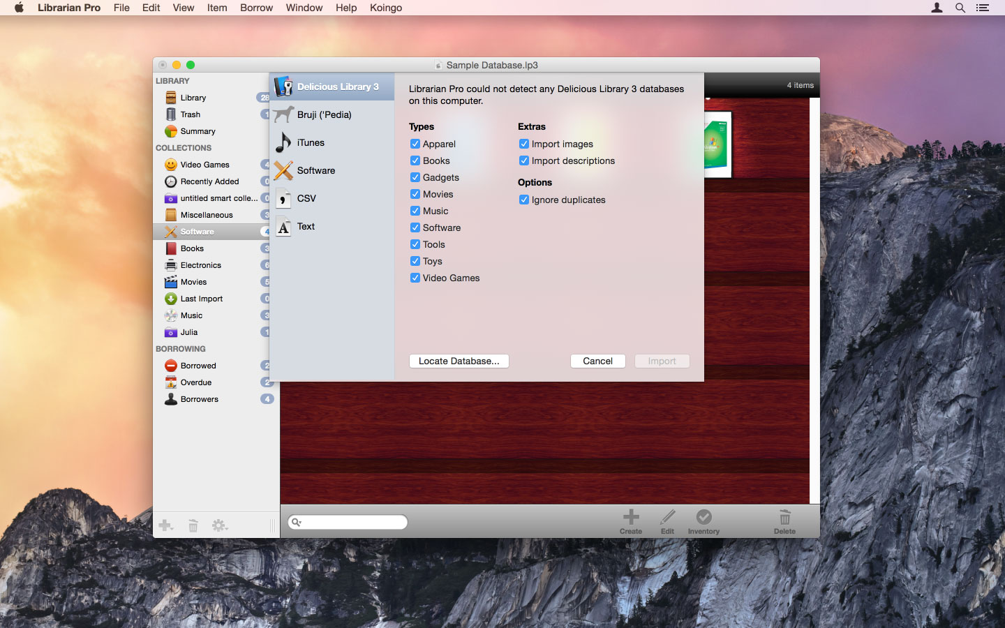 At the same time, you can also manually input new entries in any of the default categories: books, electronics, miscellaneous, movies, music, software, or video games. Of course, you can also create your own collections.