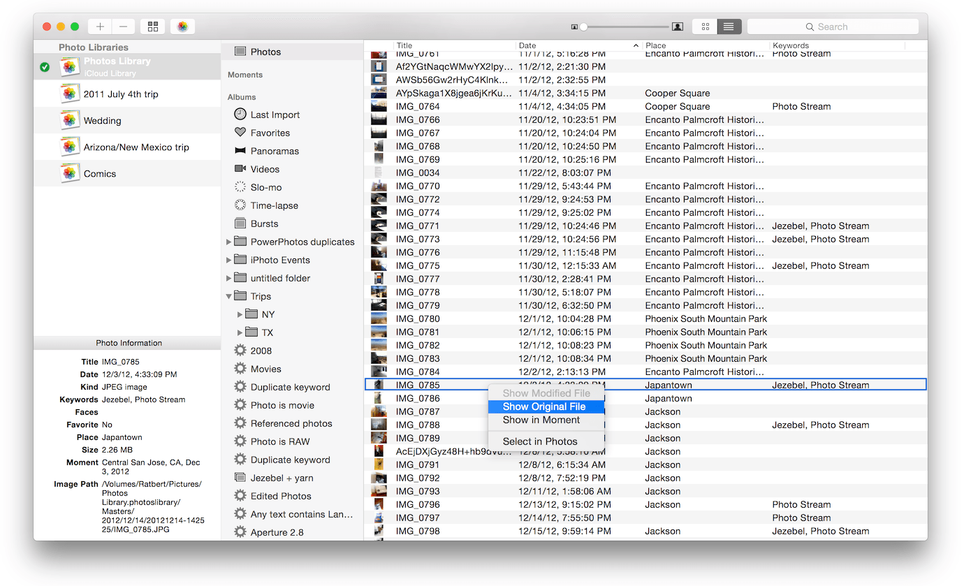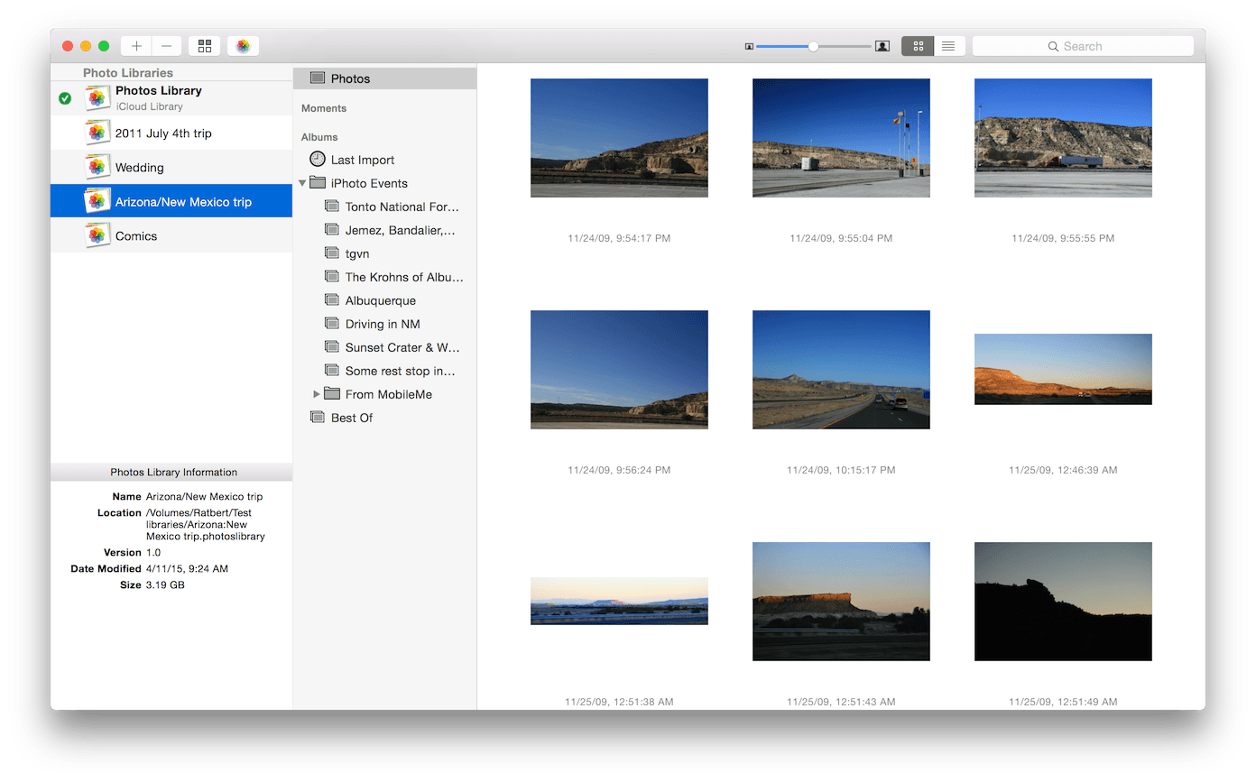When using the Photos app to organize photos on your Mac, PowerPhotos allows you to break your photos up among multiple Photos libraries, rather than having to store all of your photos in one giant library. You can easily switch between libraries, or just browse the photos in your libraries directly from PowerPhotos, without having to open each library in Photos. PowerPhotos also supports searching across all your libraries at once to help track down a particular photo.
