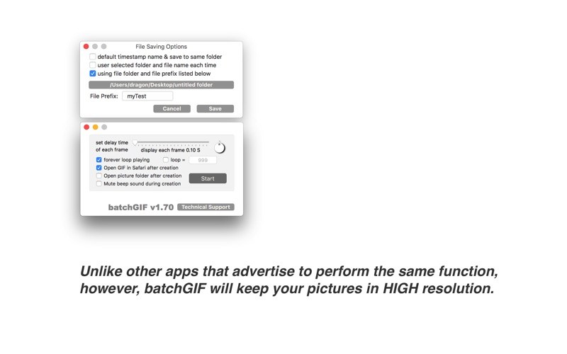 Unlike other apps that advertise to perform the same function, however, batchGIF will keep your pictures in HIGH resolution.