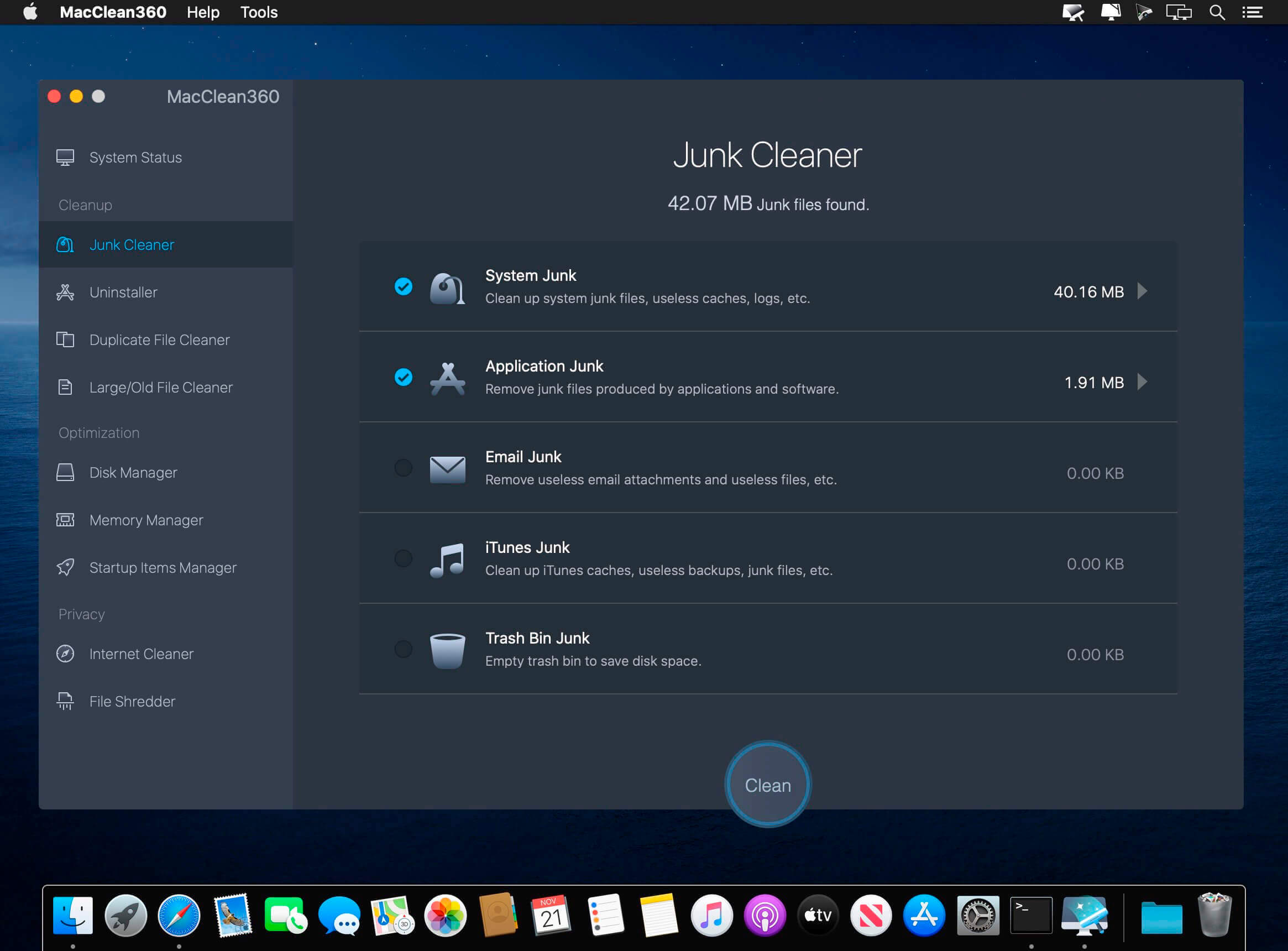 Clean up and free up space on Mac — MacClean 3 scans out all safe-to-remove junks generated in your system, such as caches, log files, app leftovers, temp files, development junks, etc. It also gives a bunch of cleanup utilities to help you do cleaning with old and large files, useless duplicates, unused language files, etc.