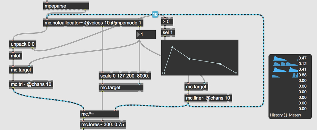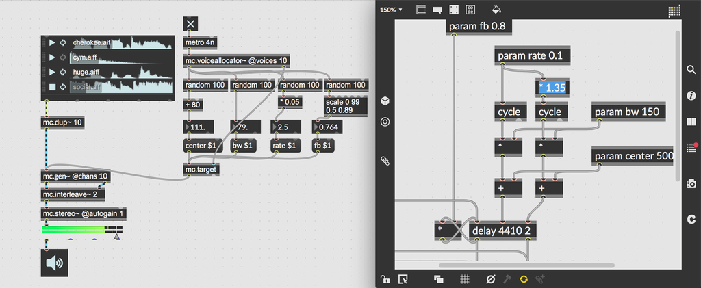 • Build up more layered sounds using MC objects to patch multichannel audio.
