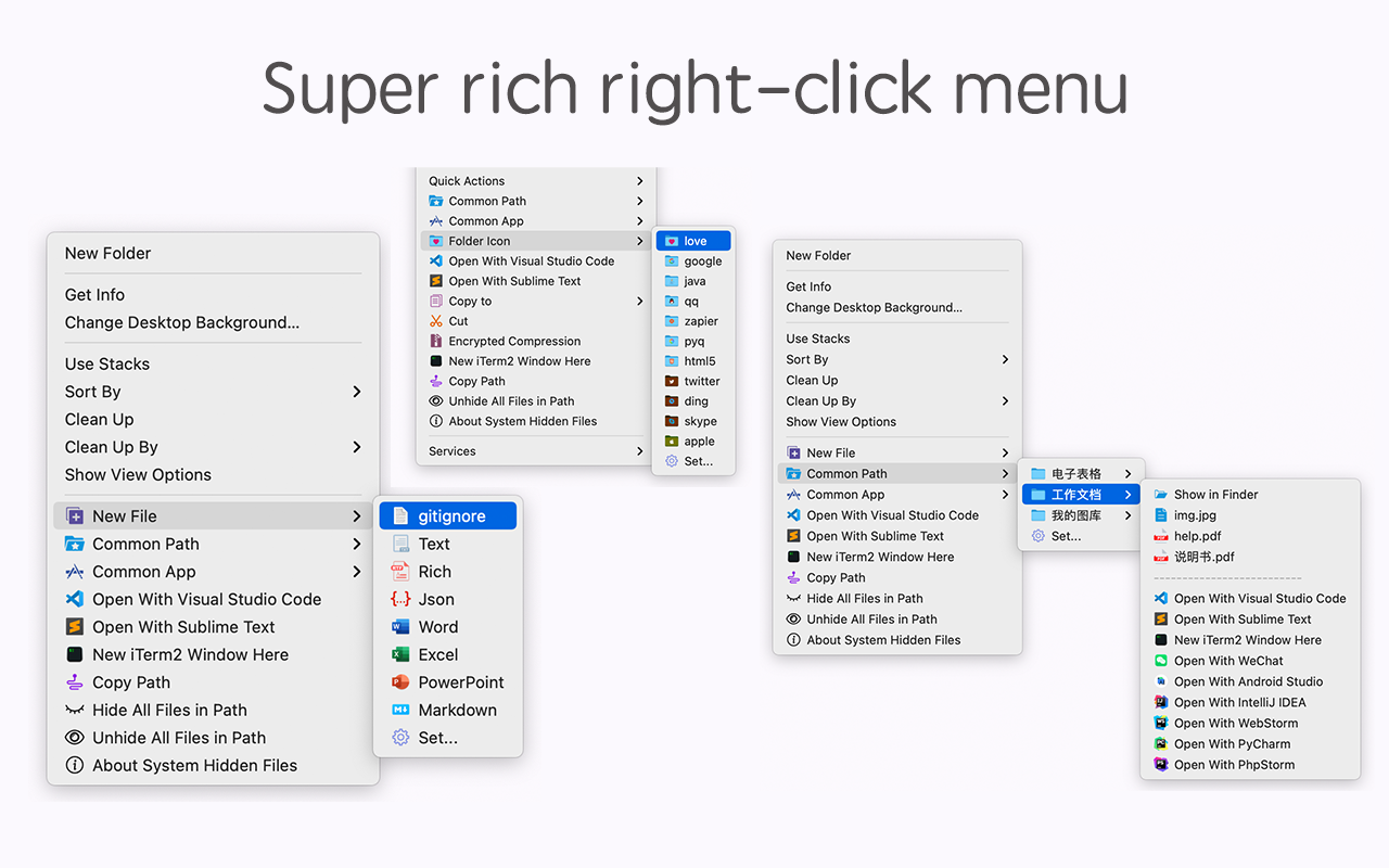You can create any file type you want, open any APP you want, self-sorting, fully customized!