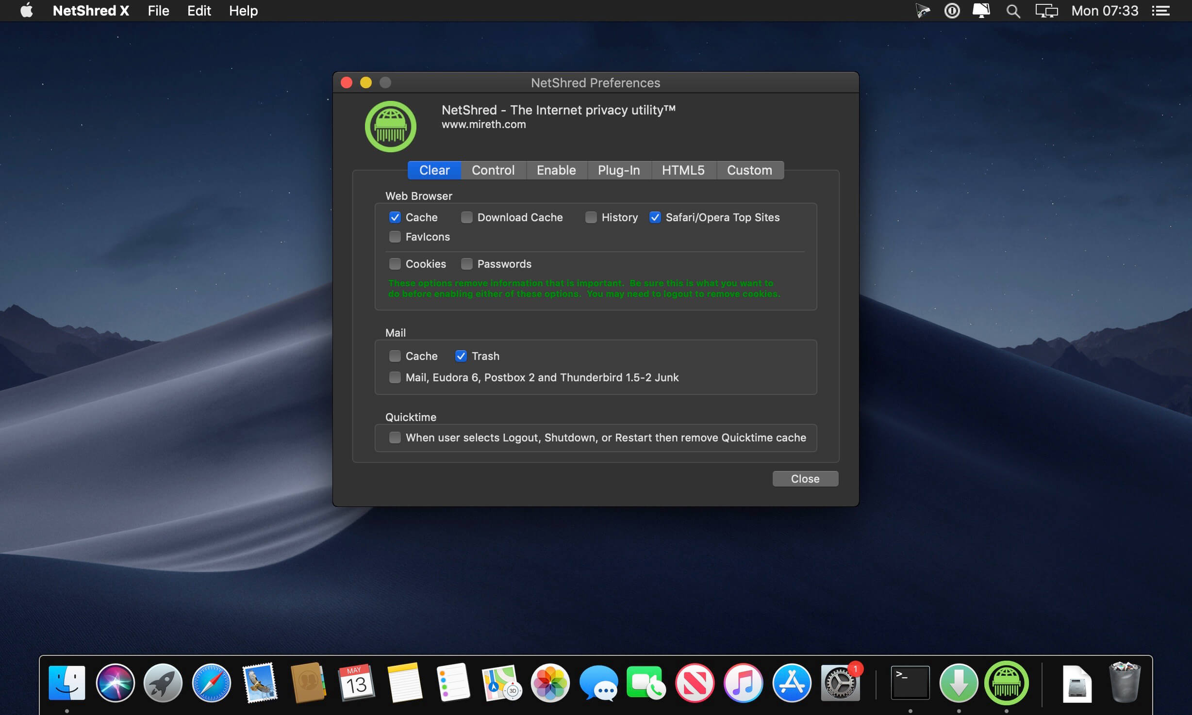 NetShred X is the easy-to-use Internet cache eraser for Mac that securely erases cache files your browser and email programs leave behind. NetShred X is the Internet privacy software that is easy, fast, and cleaner. Easy because it runs automatically – you don’t have to remember to use it. Fast because it runs in the background – you don’t have to wait for it. Cleaner because it will erase, not just delete all Internet tracks for almost every browser and email program on Mac.